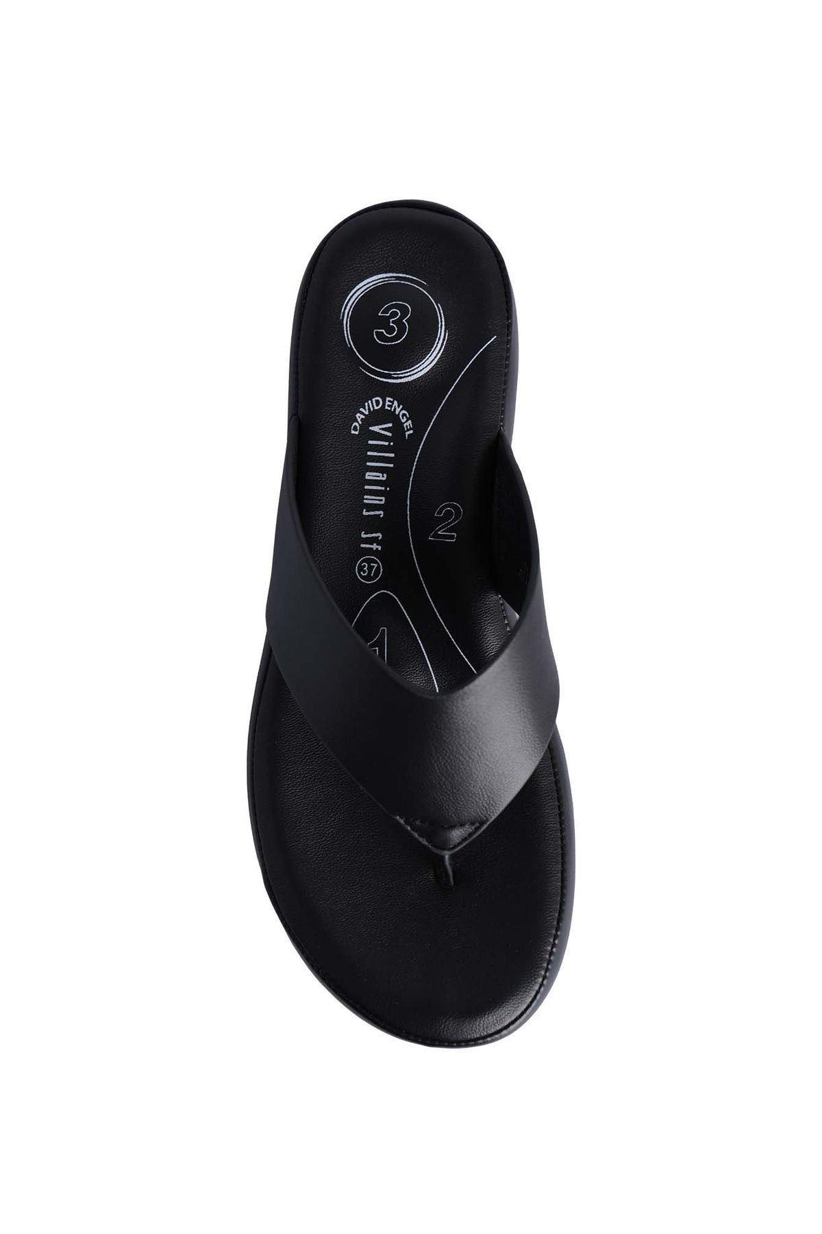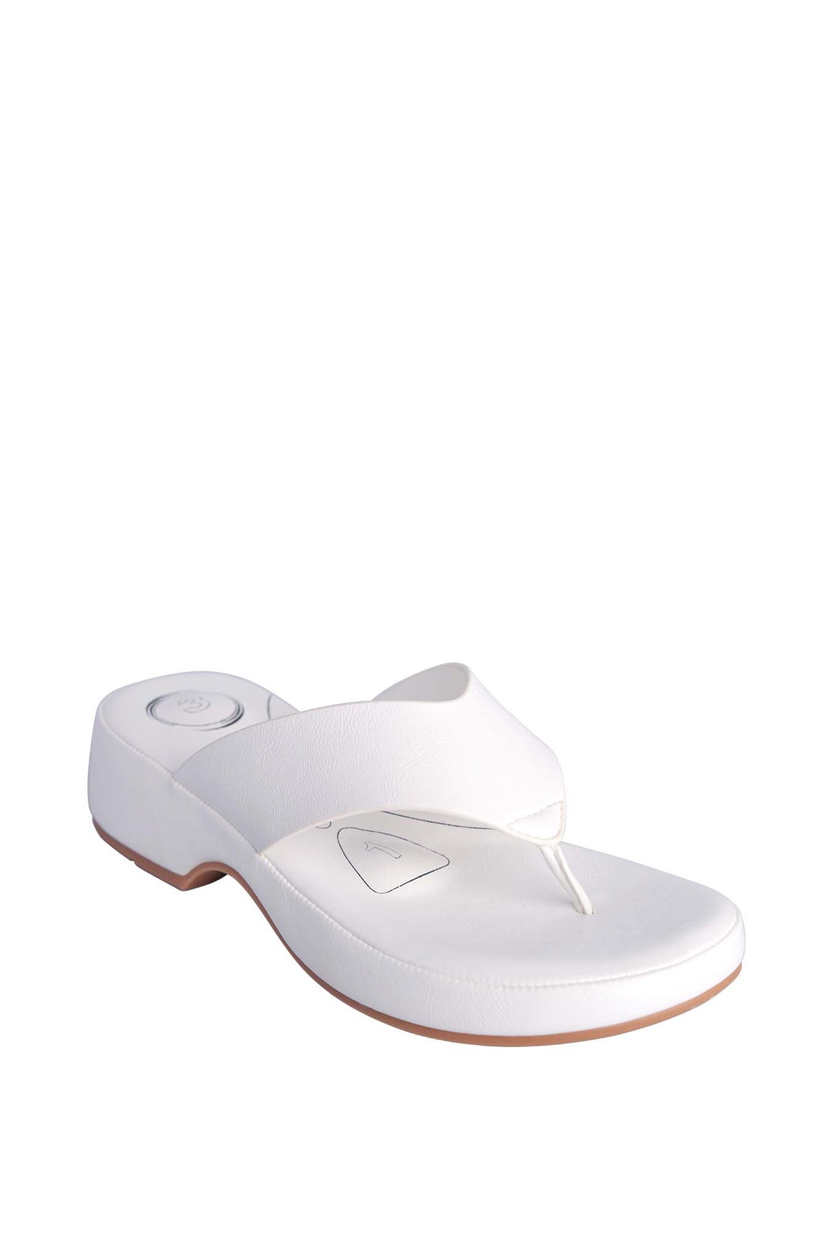 DRIFT SOFT slip-on sandal with a toe post design. It has a slightly elevated sole, giving it a wedge-like look for added height and comfort. The sandal features a wide strap across the top for support and stability, making it simple yet practical for casual wear.
