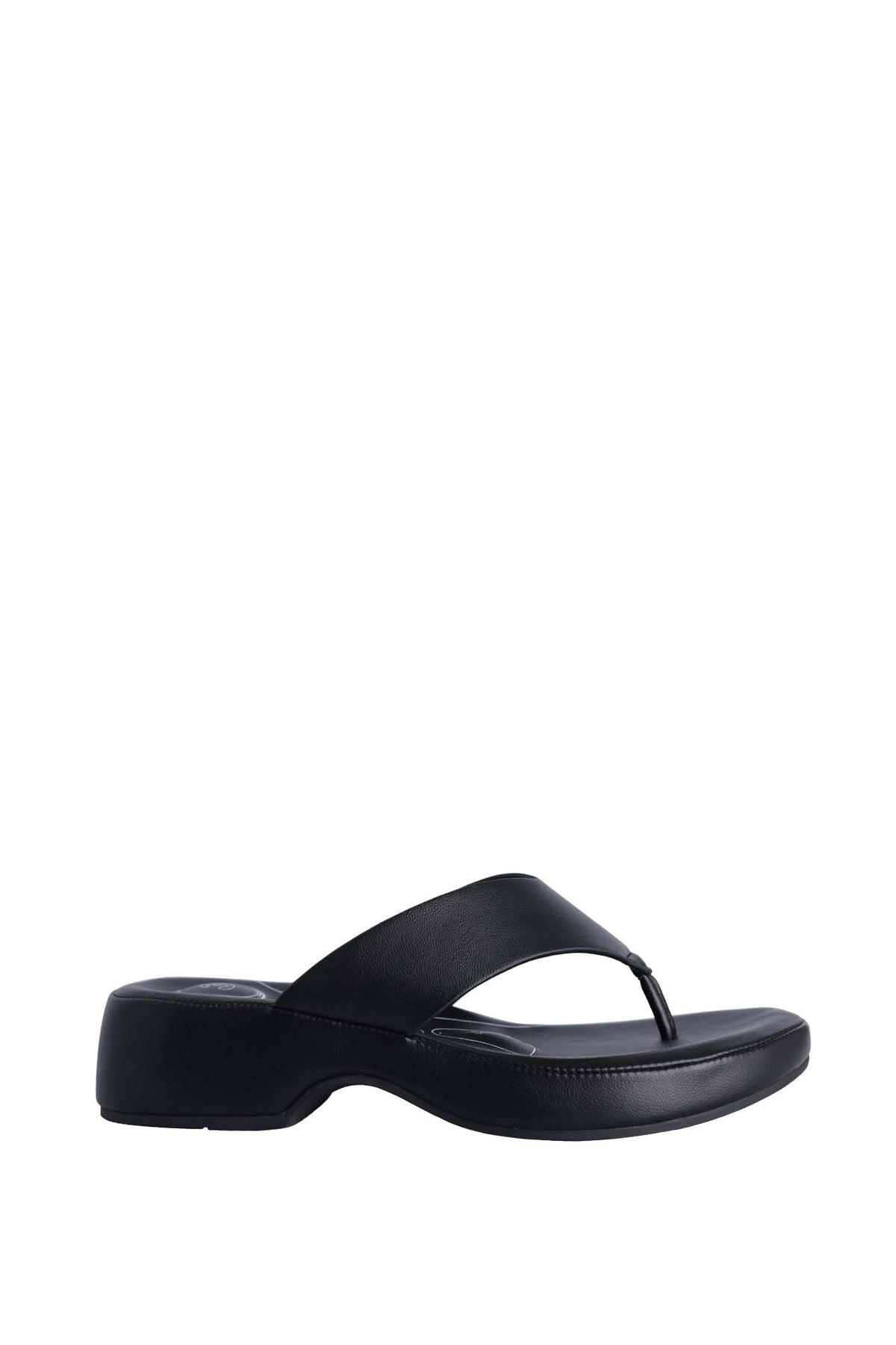 DRIFT SOFT slip-on sandal with a toe post design. It has a slightly elevated sole, giving it a wedge-like look for added height and comfort. The sandal features a wide strap across the top for support and stability, making it simple yet practical for casual wear.