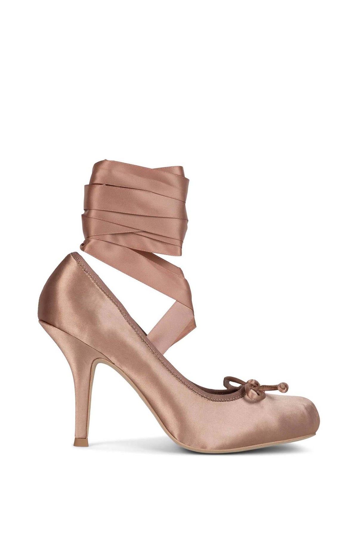 Nympha high-heeled pumps with a ballet-inspired style, often referred to as "ballet heels" or "ballerina pumps. Designed by Jeffrey Campbell sold by Villains SF. Shoes takes inspiration from a ballet slipper, featuring a rounded or slightly square toe and a delicate bow or tie detail at the front, reminiscent of a ballet flat. Feature ribbons are designed to be wrapped & tied around the ankle or calf much like a pointe shoes.