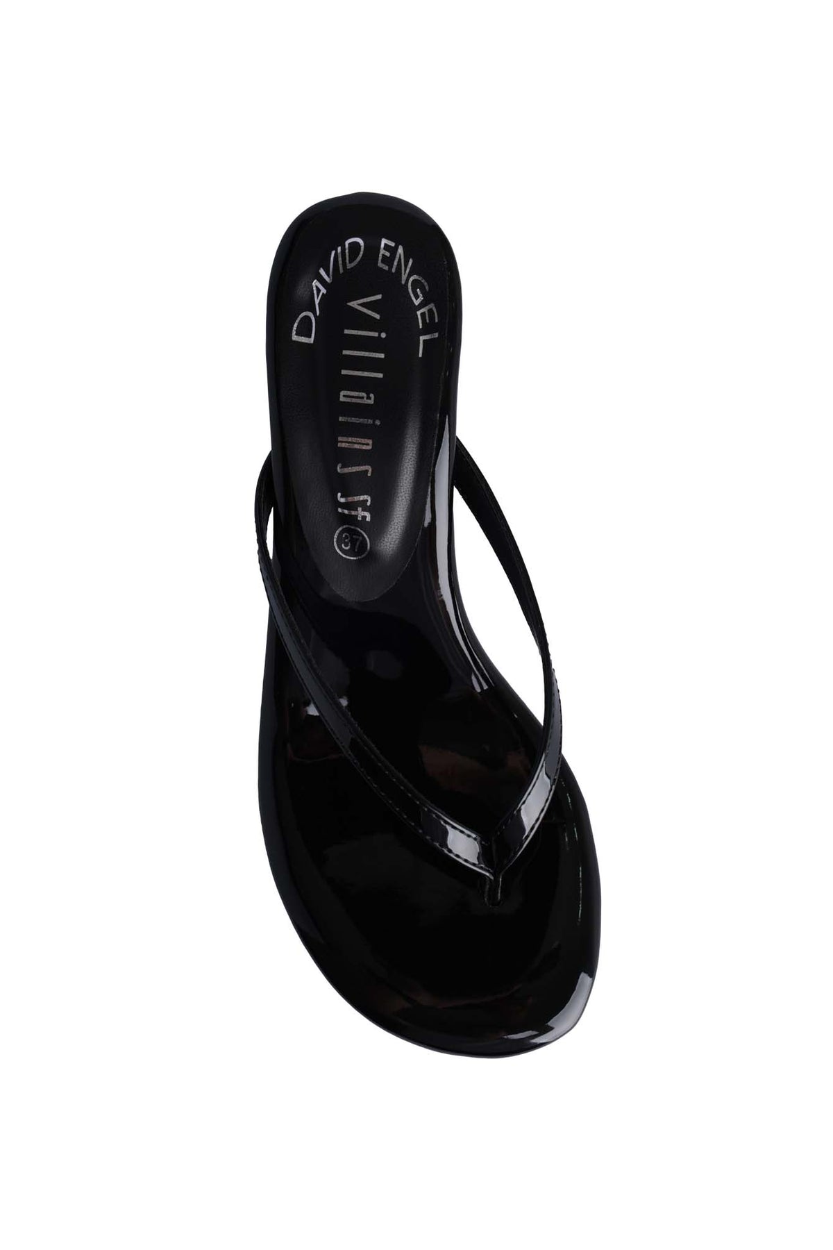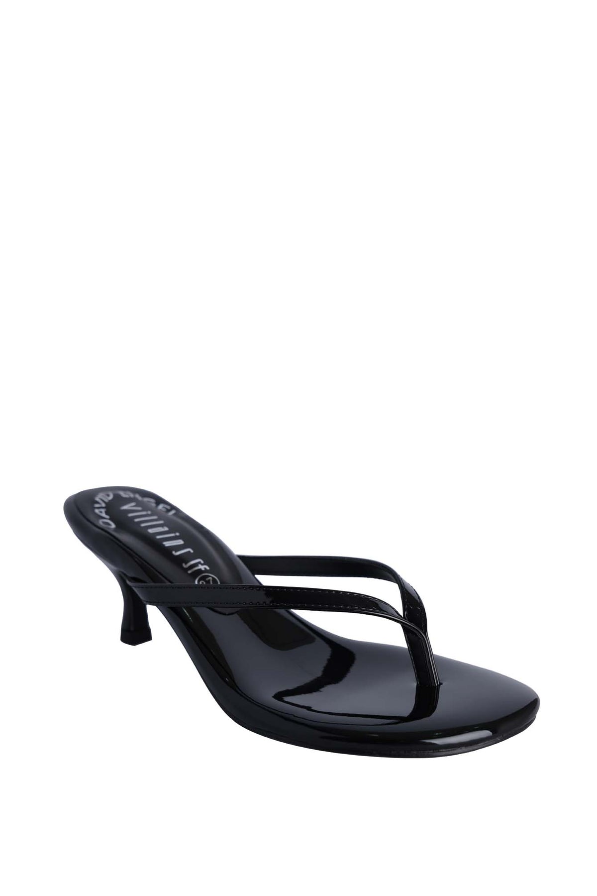 WAXFLOWER sleek black kitten heel sandal featuring thin strappy details and a thong-style toe strap. The shoe has a modest heel height that provides a subtle lift while maintaining comfort. The minimalist design makes it suitable for both casual and semi-formal occasions.