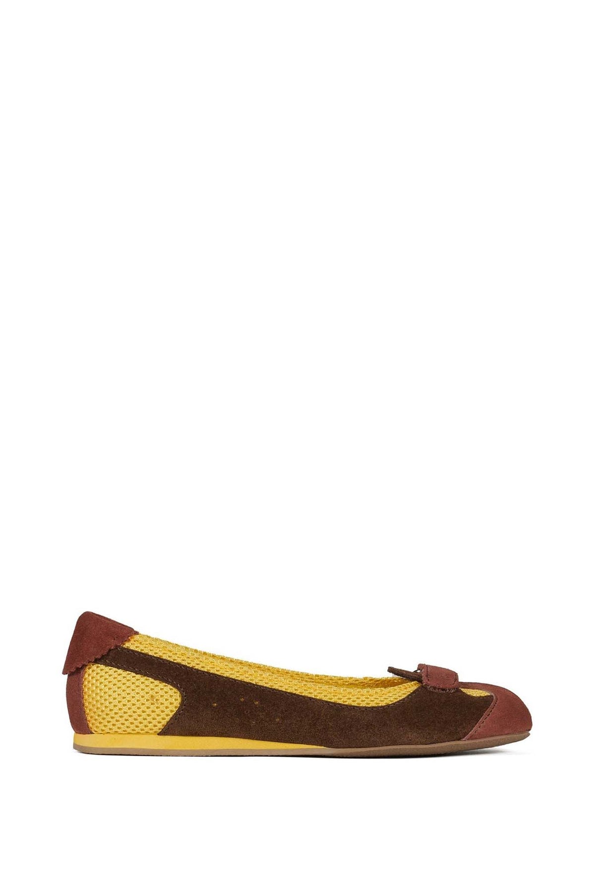 FAYLEN ballet flats featuring breathable mesh panels and soft suede accents. The sleek silhouette is elevated with a delicate bow detail and a subtle split-toe design for a fashion-forward edge. Lightweight, flexible, and easy to style, perfect for everything in between.