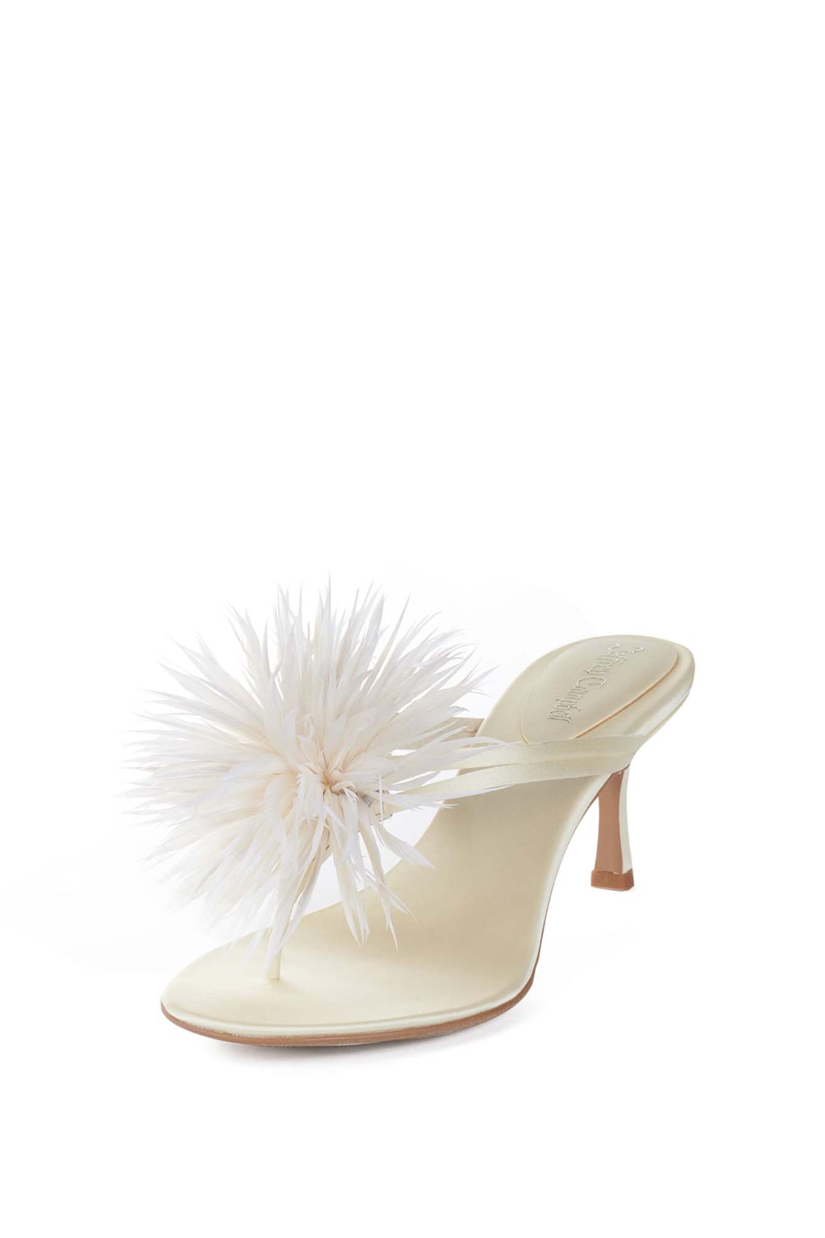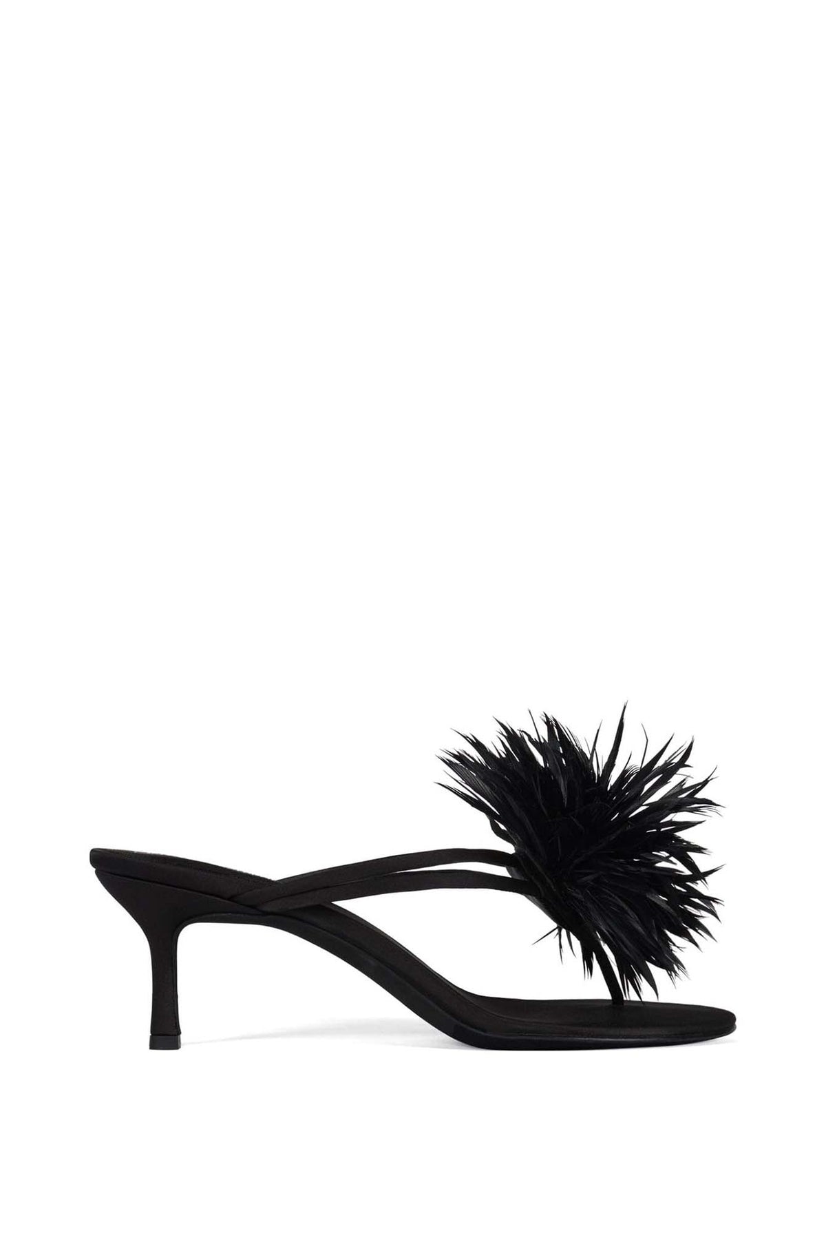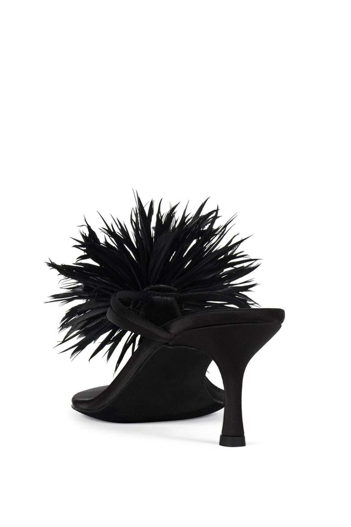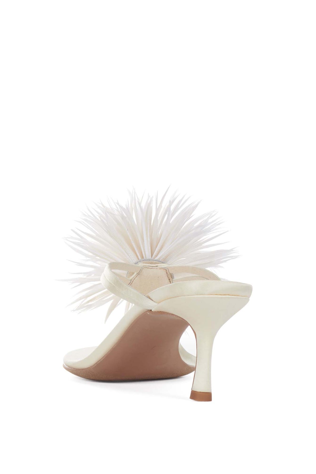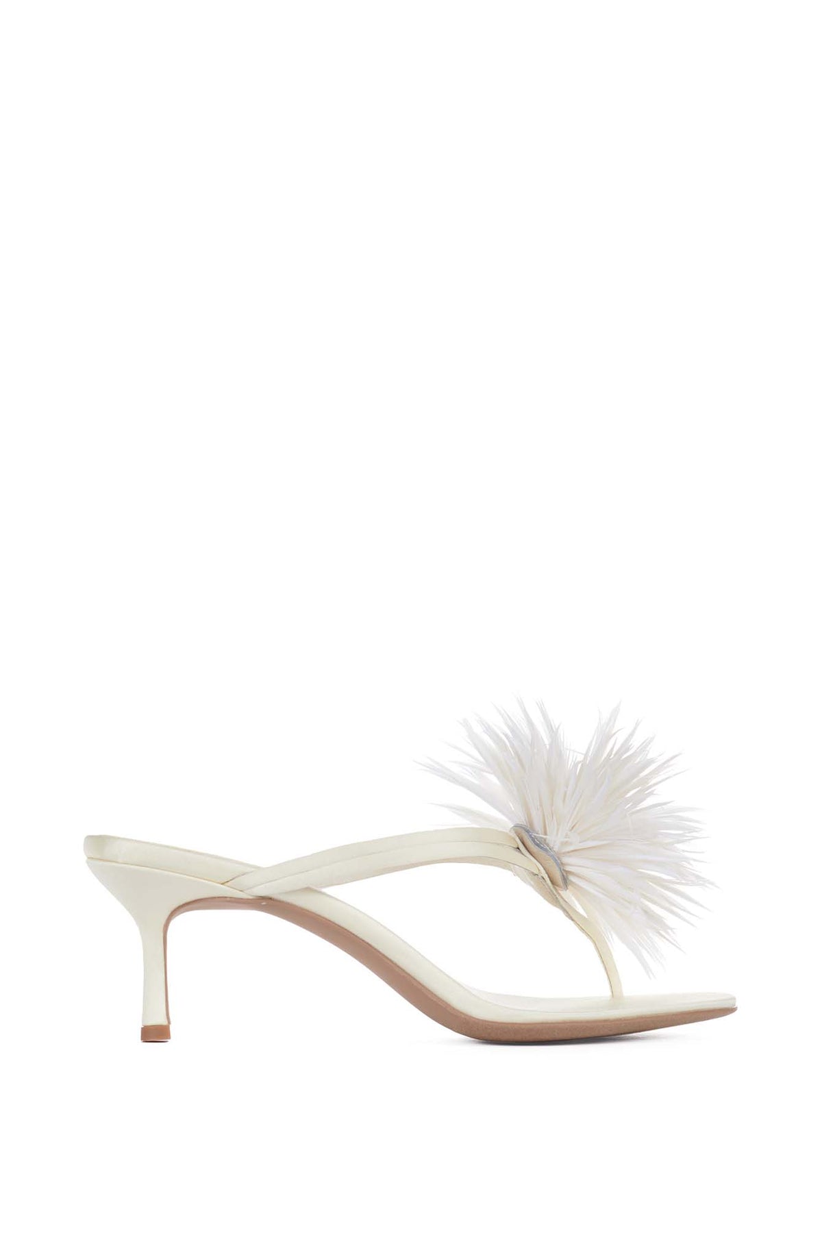 FIREWORK, elegant heeled sandals feature a slim mid heel and a delicate thong-style strap design. The highlight is a chic feather-like floral embellishment on the upper, adding a playful yet luxurious touch, they bring a light, airy. Perfect for parties. A must-have statement piece for fashion lovers who want something unique, classy, and eye-catching.