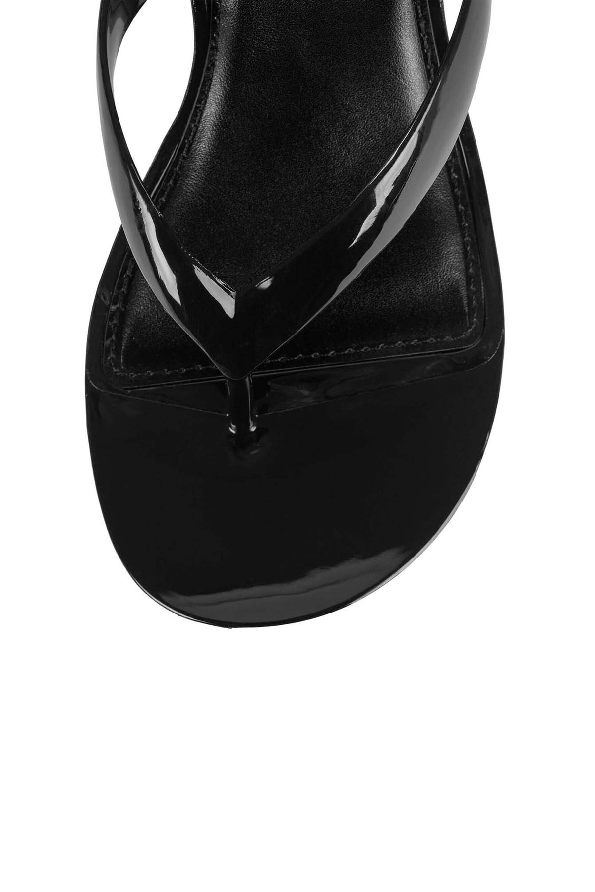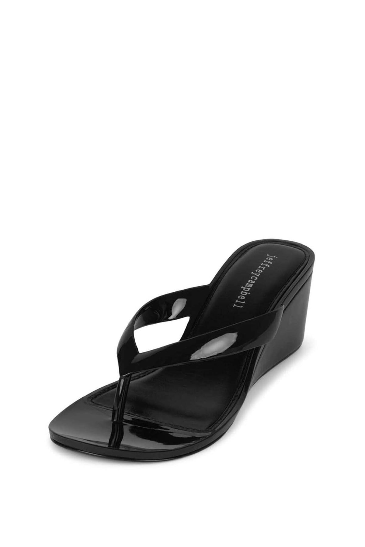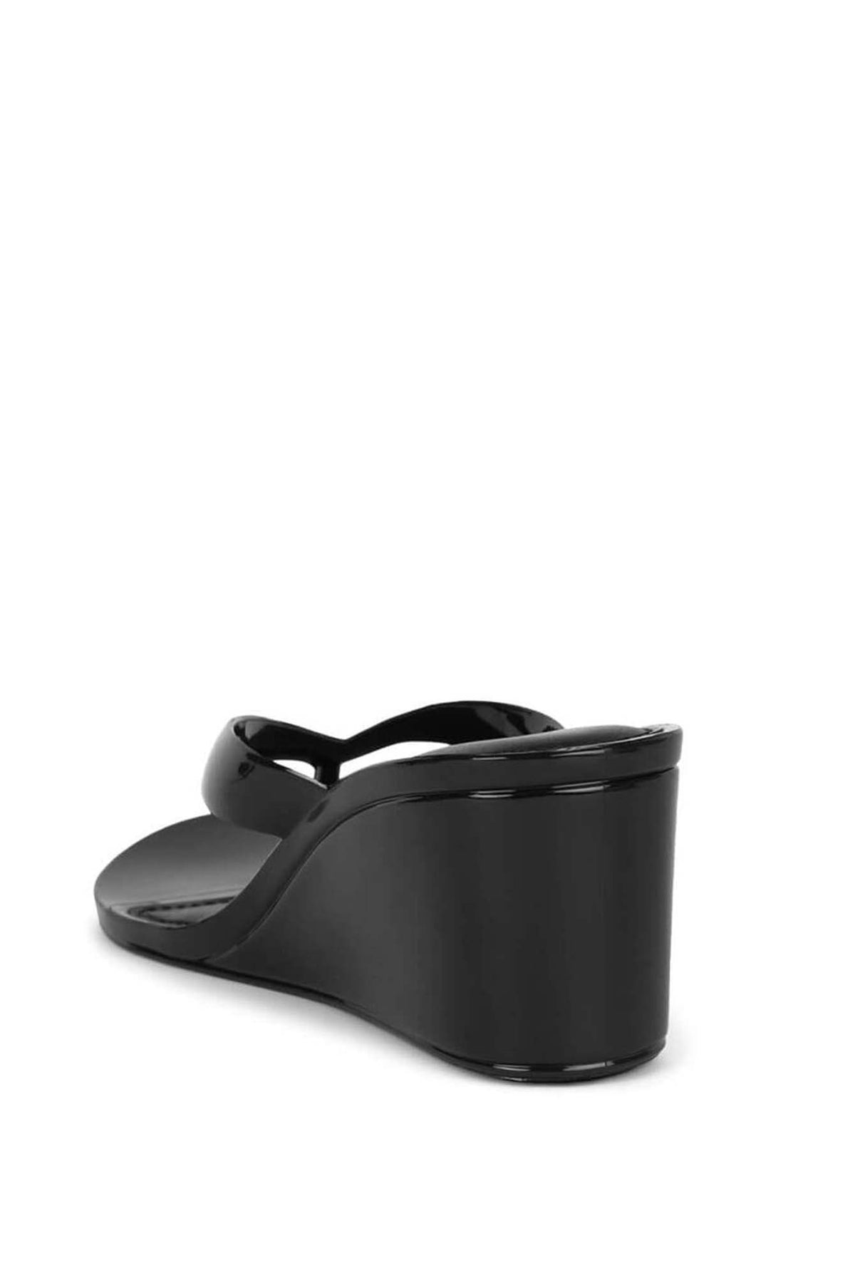 GIGABYTE wedge sandal or wedge flip-flop/thong sandal. The upper part appears to be made of patent leather or a material with a shiny, glossy finish. It features a single wide strap across the foot and a toe post (thong strap). The shoe has a solid wedge heel for elevation.