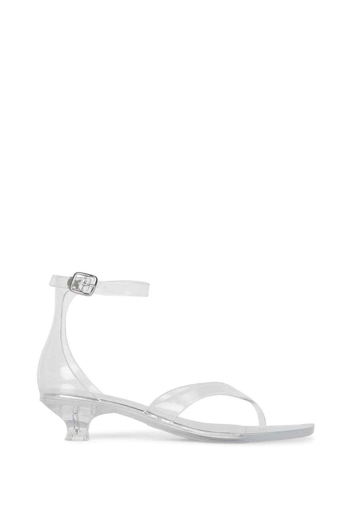 GUMMY-THG thong sandals with a glossy finish. The design features a minimalist toe-post strap, a delicate ankle strap with a small buckle, and a short kitten heel for a subtle lift. The sandals have a modern, sculptural silhouette made from sleek, jelly-like material, perfect for adding a chic, playful touch to summer outfits while staying comfortable and stylish.