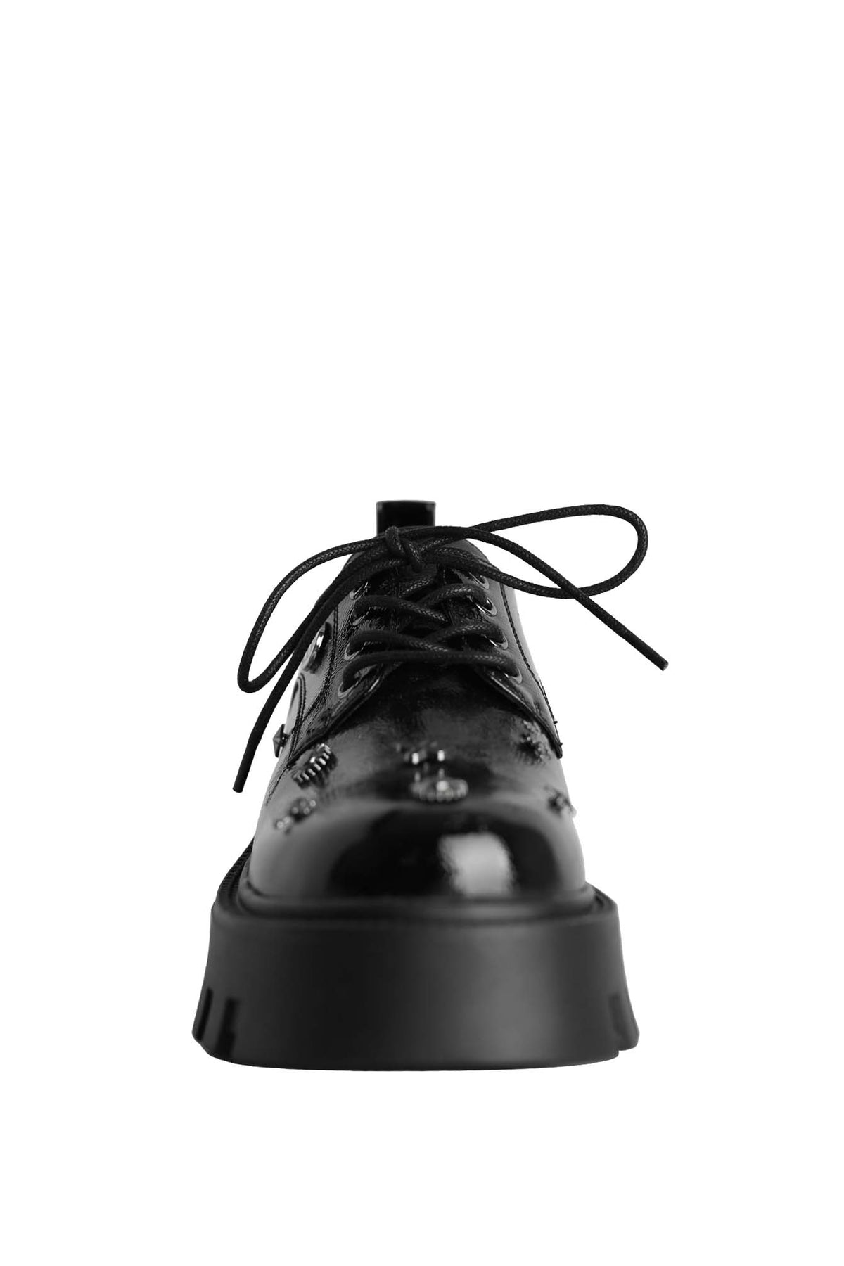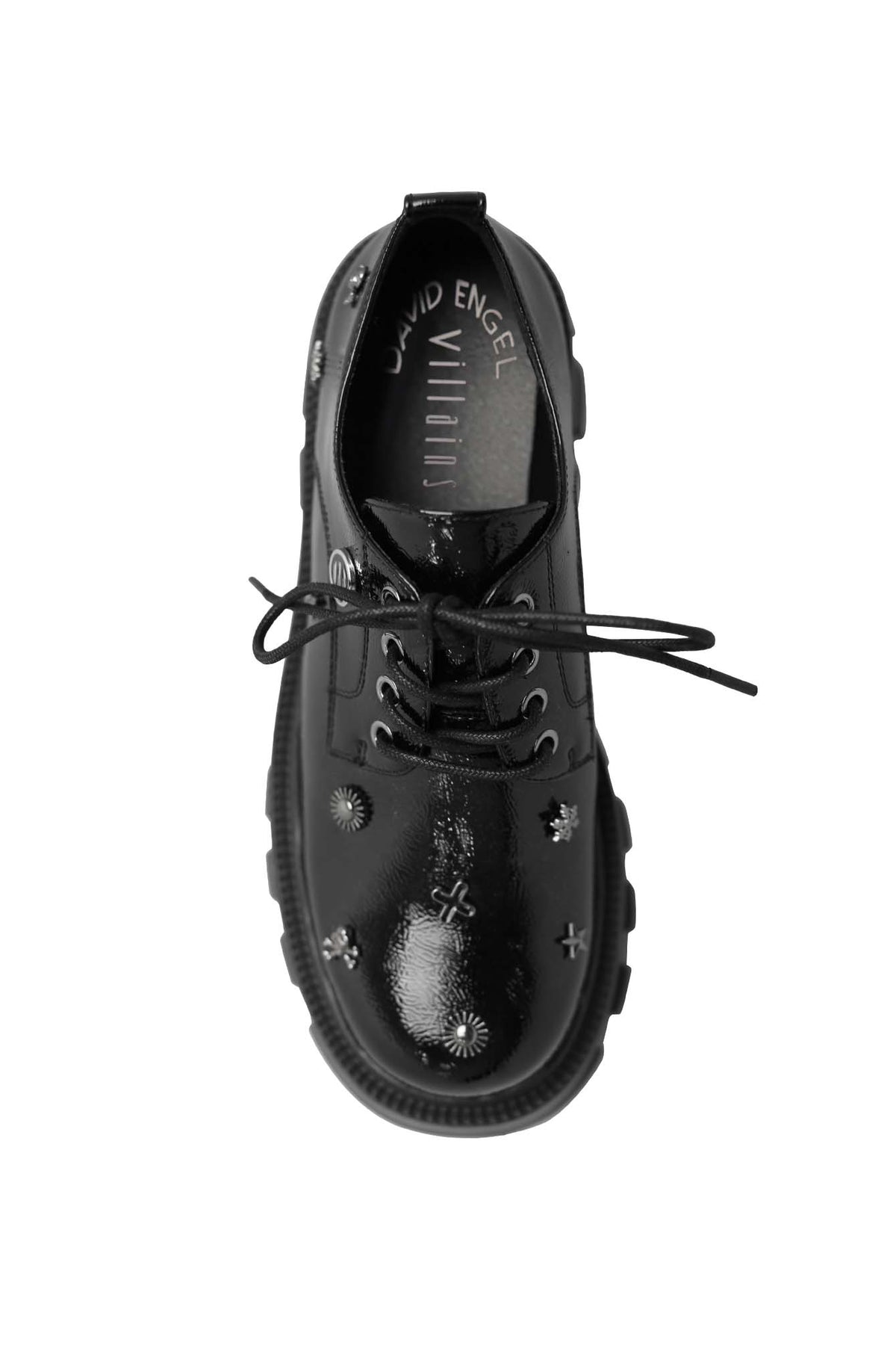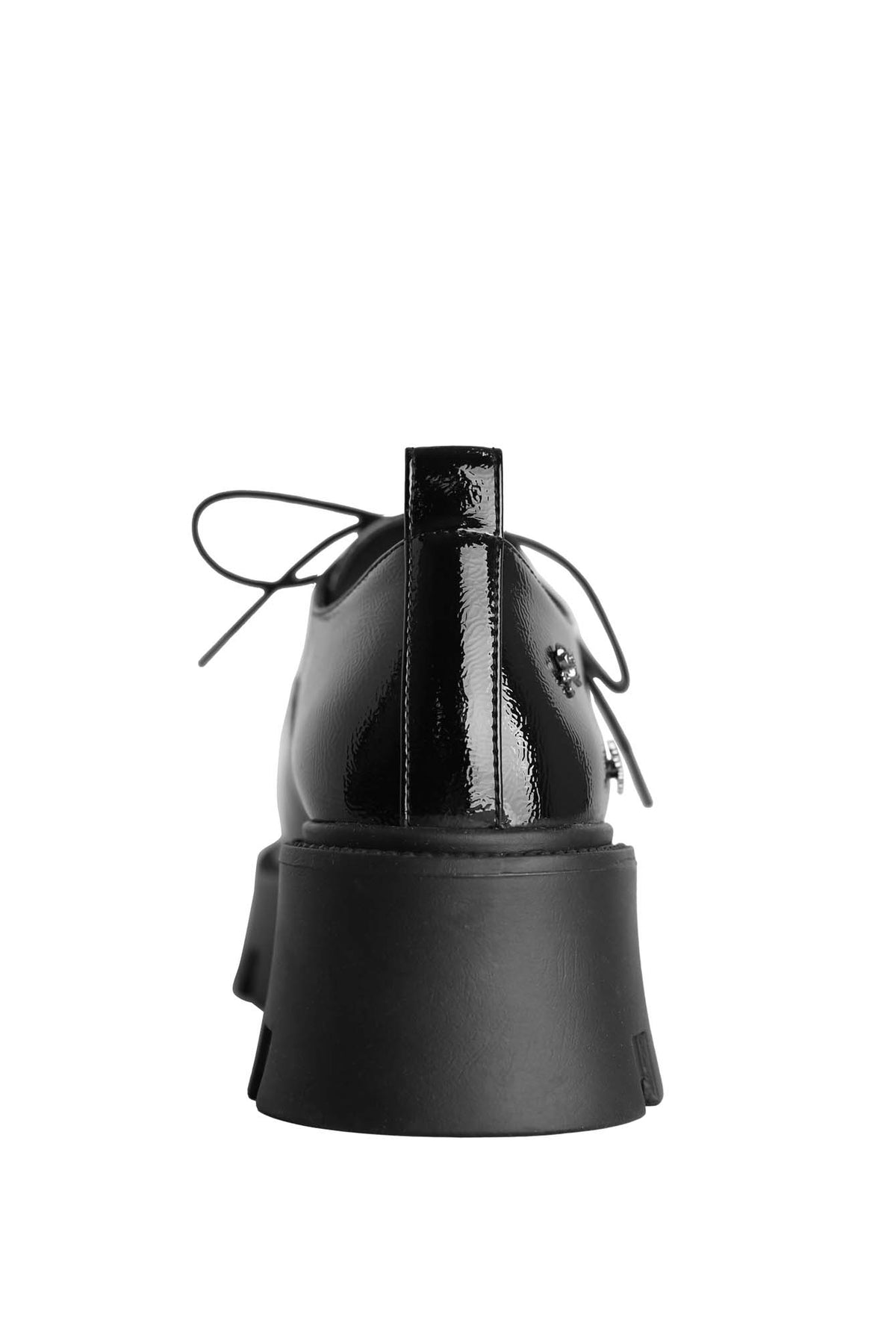 IRON, Platform lace-up shoes with a bold, edgy vibe. They feature a chunky lug sole that adds height and a strong, modern look. The glossy finish gives them a sleek feel, while the metal studs and decorative hardware across the upper add a cool, punk-inspired touch. Sturdy, stylish, and eye-catching—perfect for making a statement while staying comfortable.