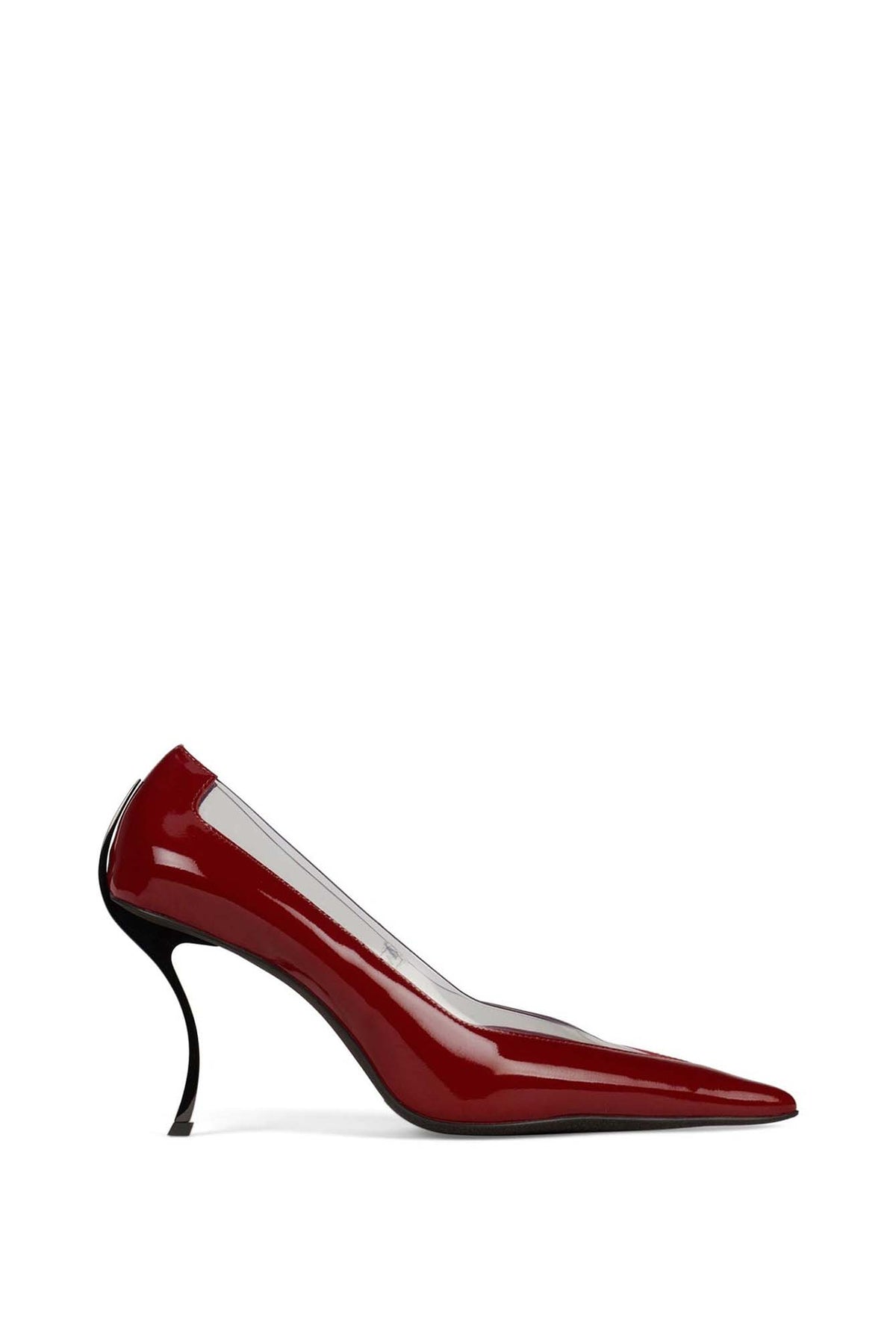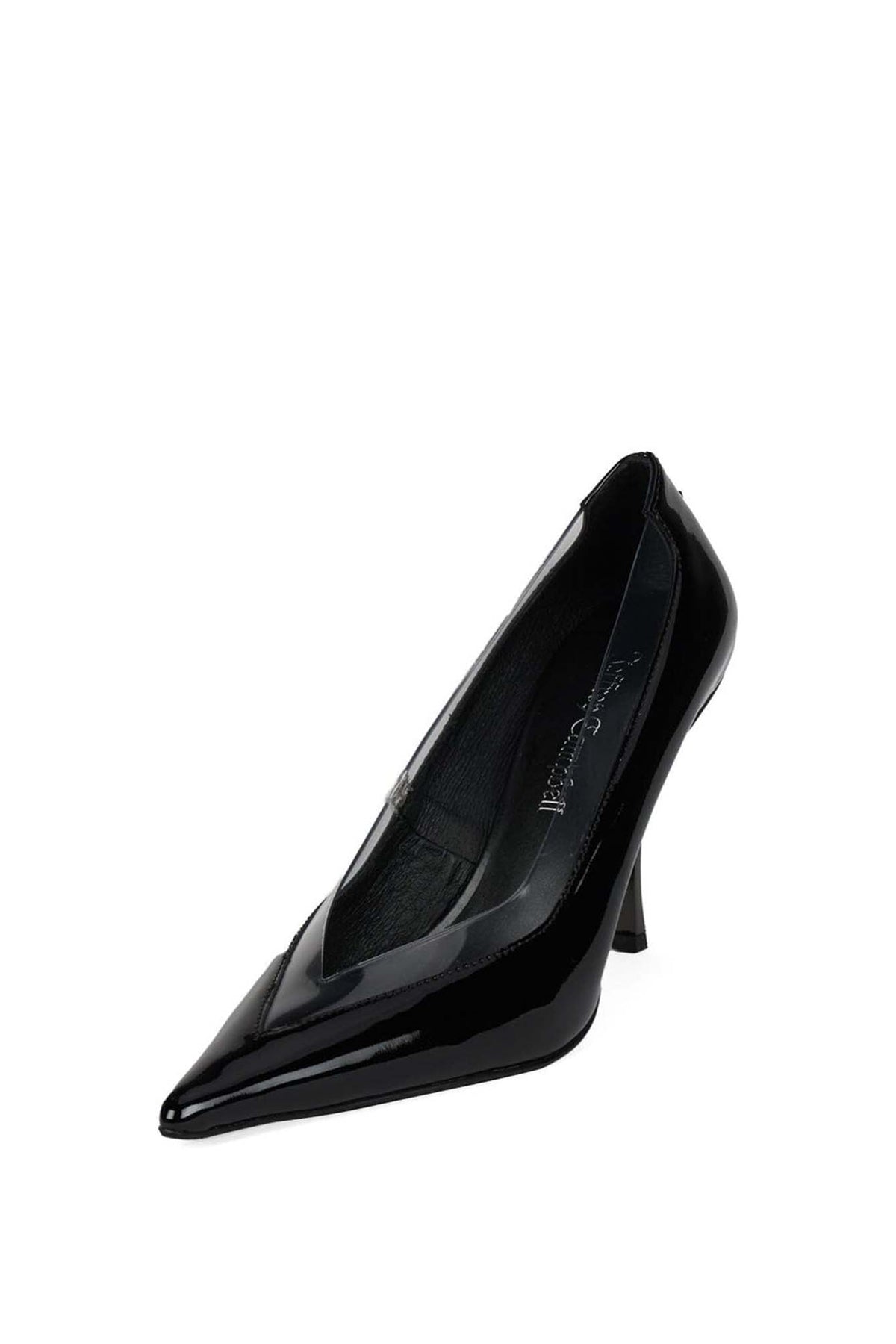 MISS-VIXEN sleek high-heel pump features a glossy with a sharp pointed toe that creates a bold, elegant look. The transparent side panel adds a modern, fashion-forward touch while visually elongating the foot. Finished with a slim stiletto heel, it’s perfect for evening wear, parties, or elevating any chic outfit.