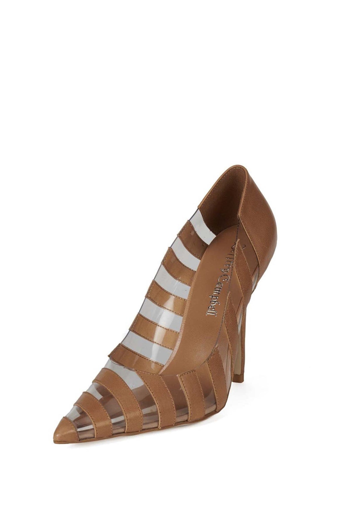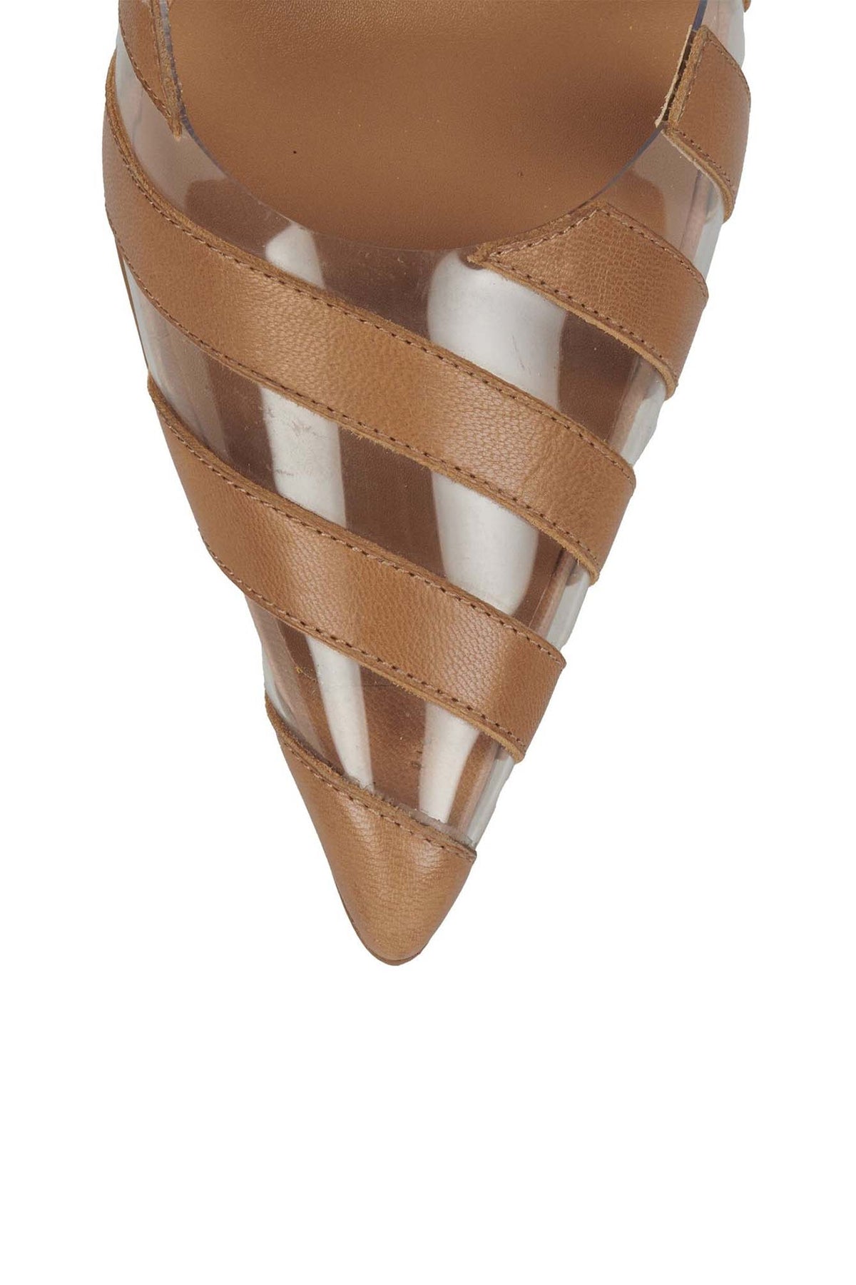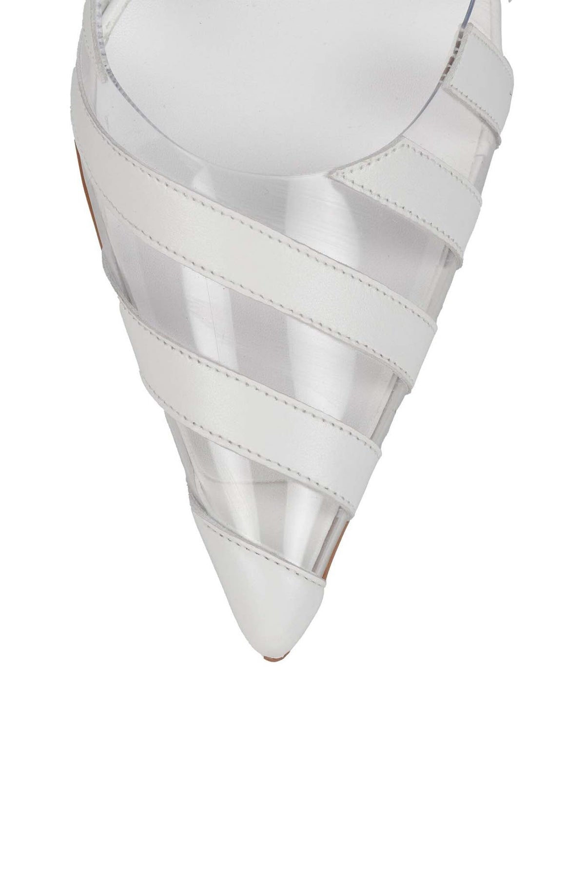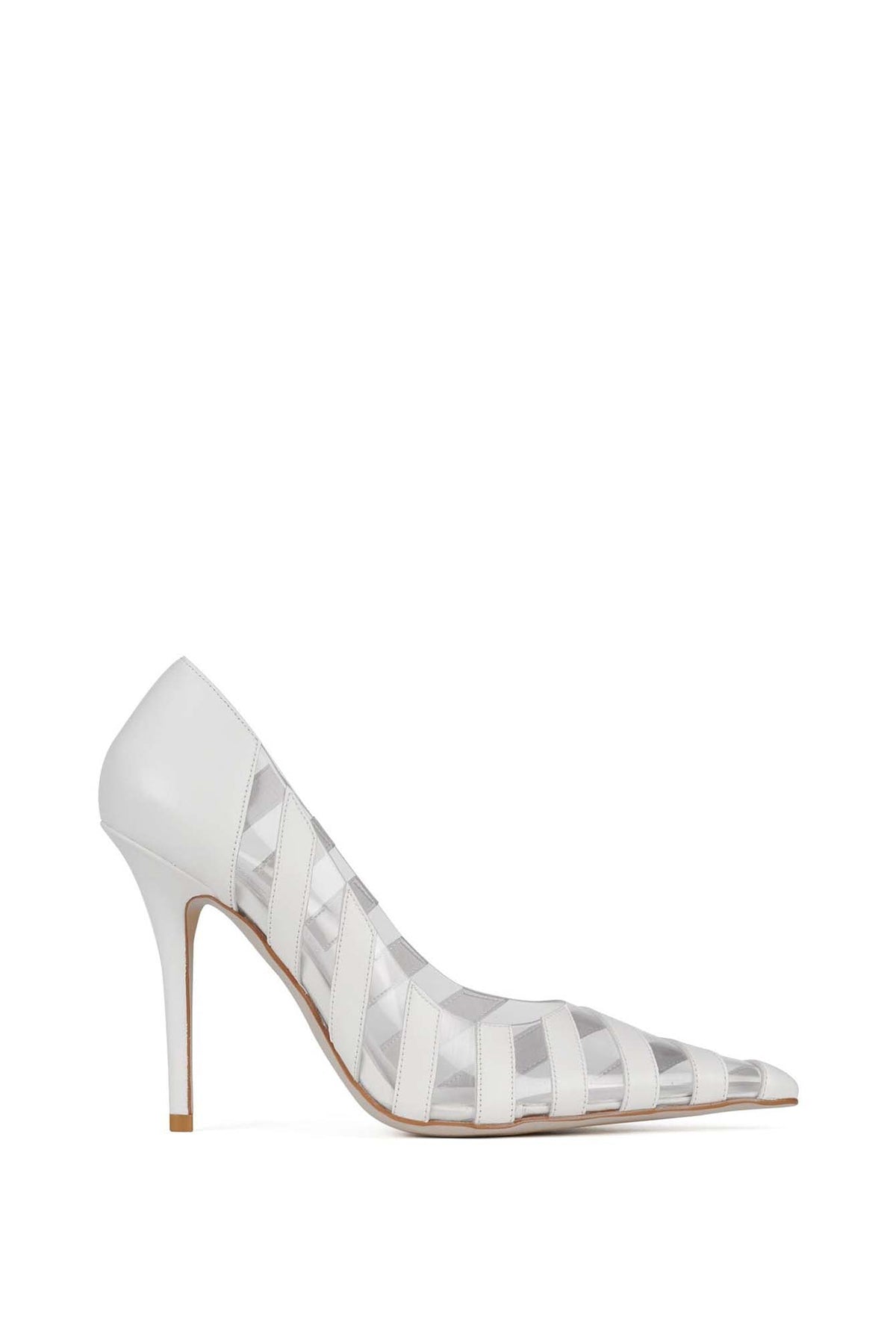 OPAQUE pointed-toe stiletto is designed to impress with its elegant woven straps and clear transparent panels that create a light, modern silhouette. While the high heel enhances posture and confidence. Perfect for day-to-night looks, this pair blends fashion and femininity effortlessly. An essential statement shoe for a refined wardrobe.