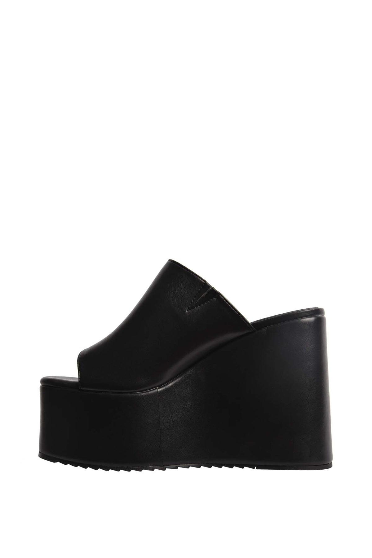SUPERB Vegan leather platform heels. Platform Slide Sandals. Open toe,. Approx: 4. 7" heel.