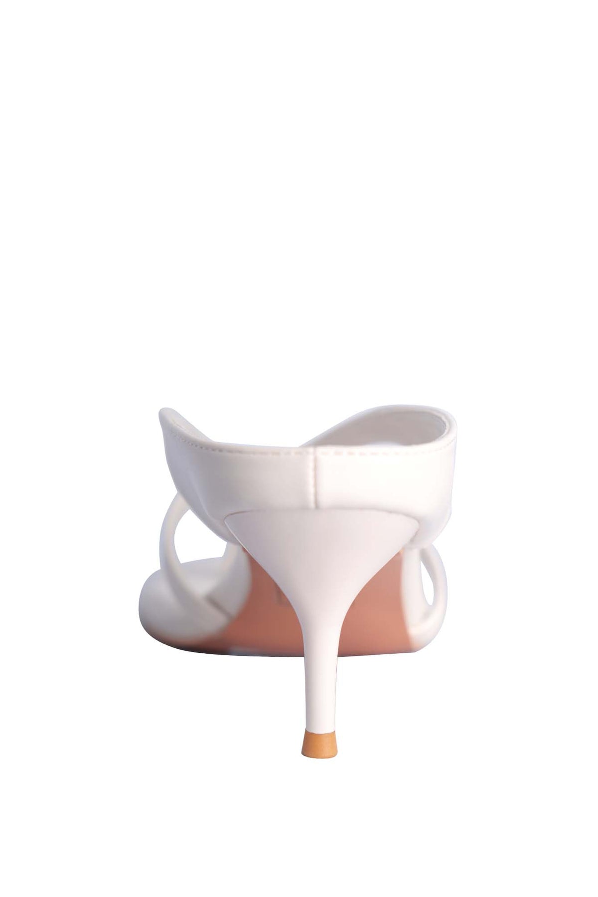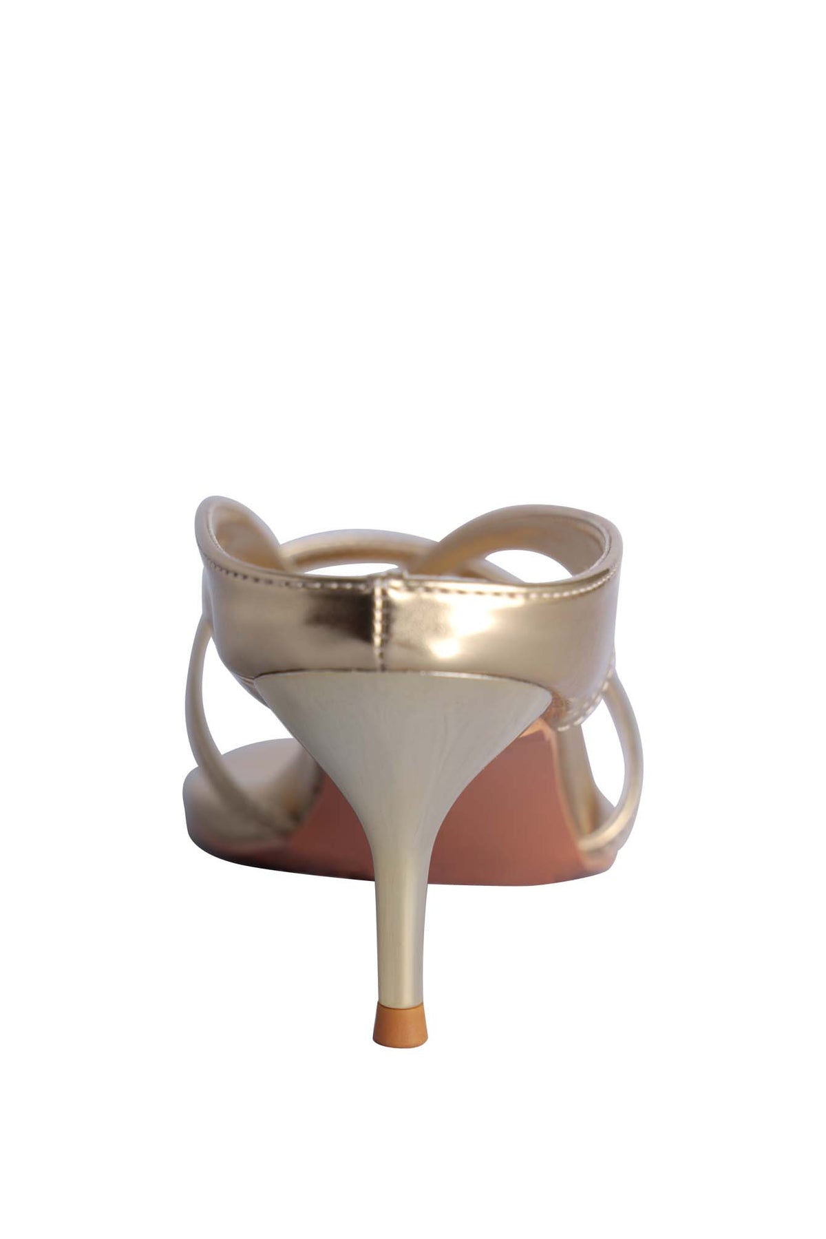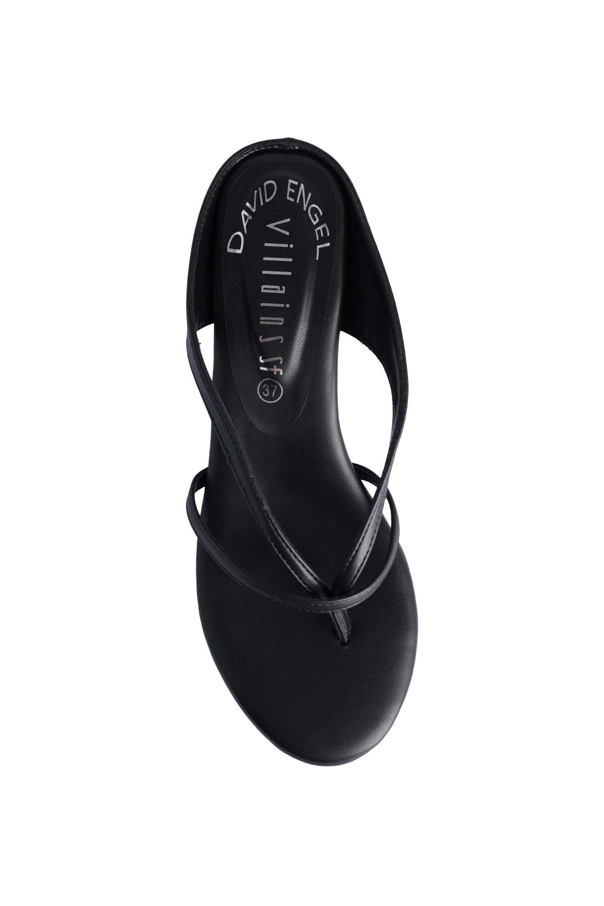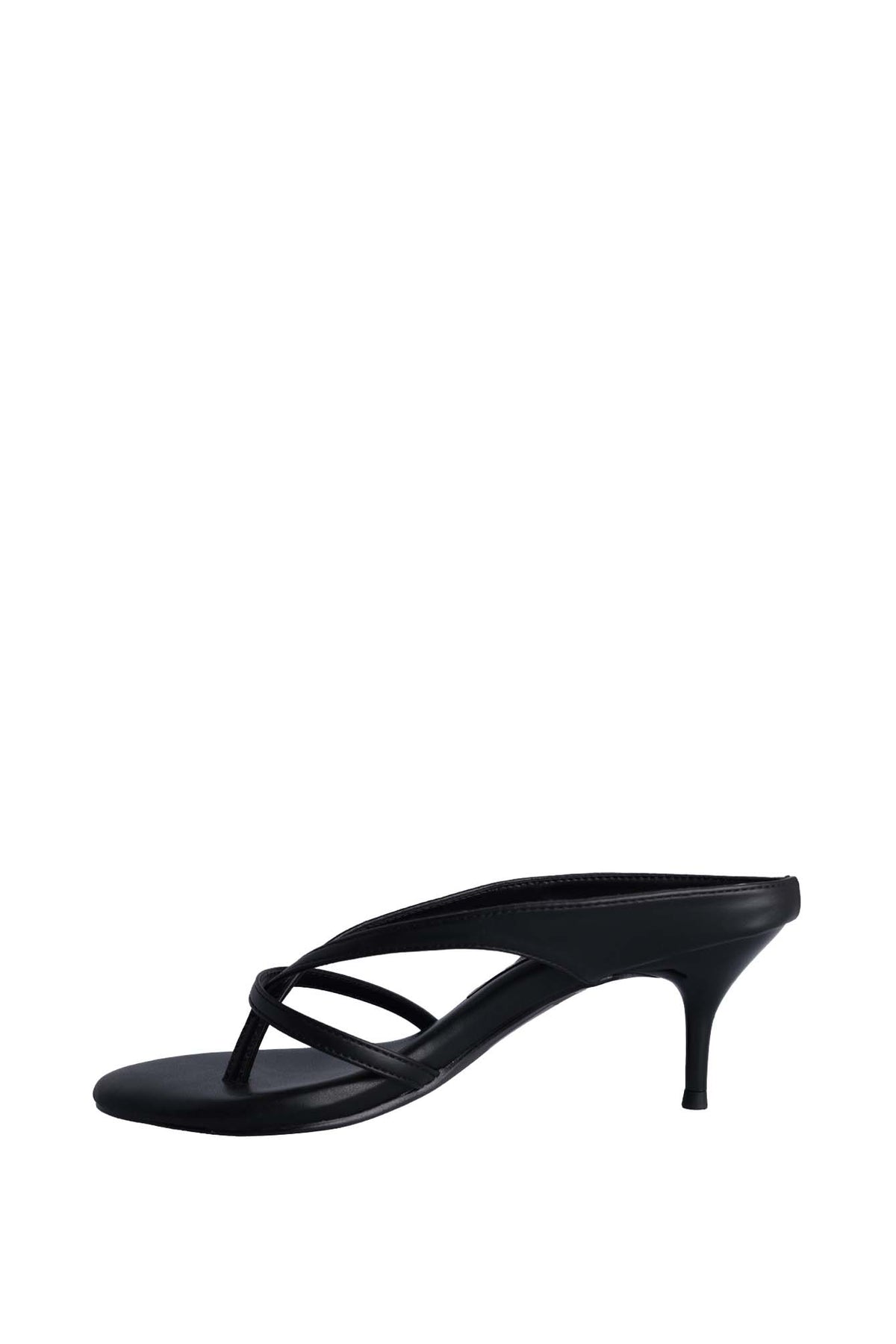 WISTERIA kitten heel sandal featuring thin strappy details and a thong-style toe strap. The shoe has a modest heel height that provides a subtle lift while maintaining comfort. The minimalist design makes it suitable for both casual and semi-formal occasions.