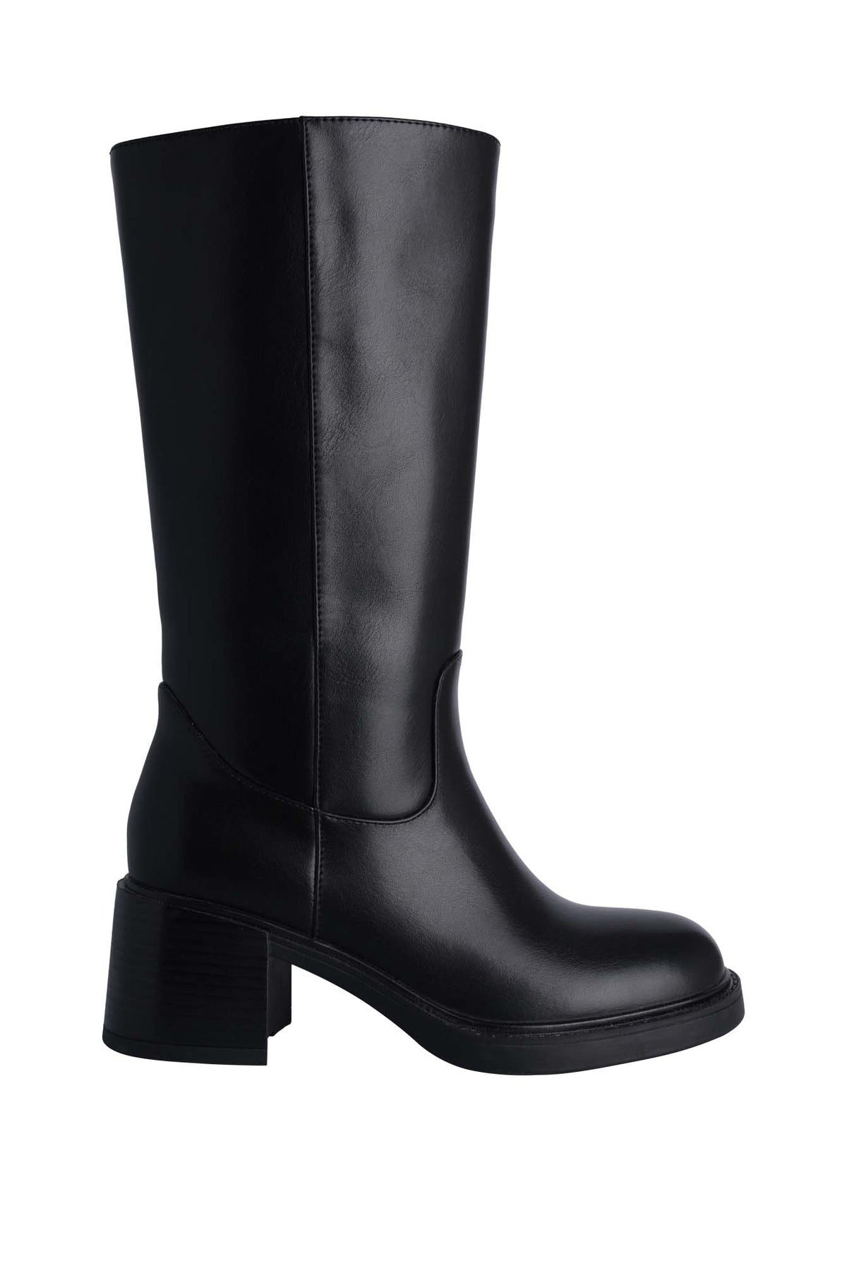 V-CLASS รองเท้าบูทสูงถึงเข่า V-CLASS รองเท้าบูททรงหัวมน ส้นเตี้ยแบบหนาสีดำ พื้นรองเท้าก็เป็นสีดำเช่นกัน หนาเล็กน้อย ให้ความรู้สึกมั่นคง ดีไซน์เรียบง่ายและสะอาดตา เป็นสไตล์คลาสสิกที่ผสมผสานความทันสมัย
