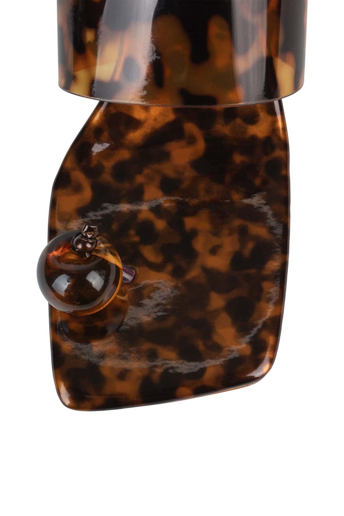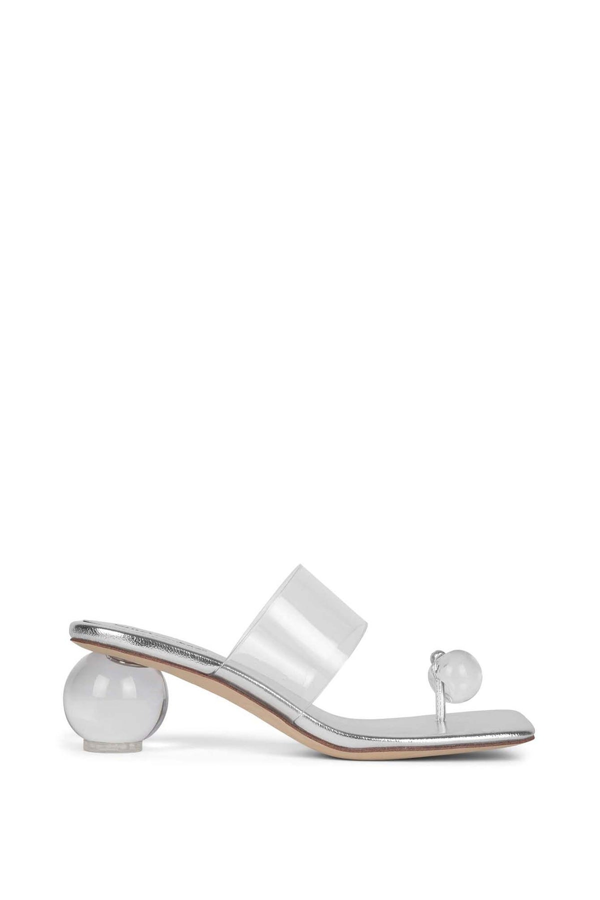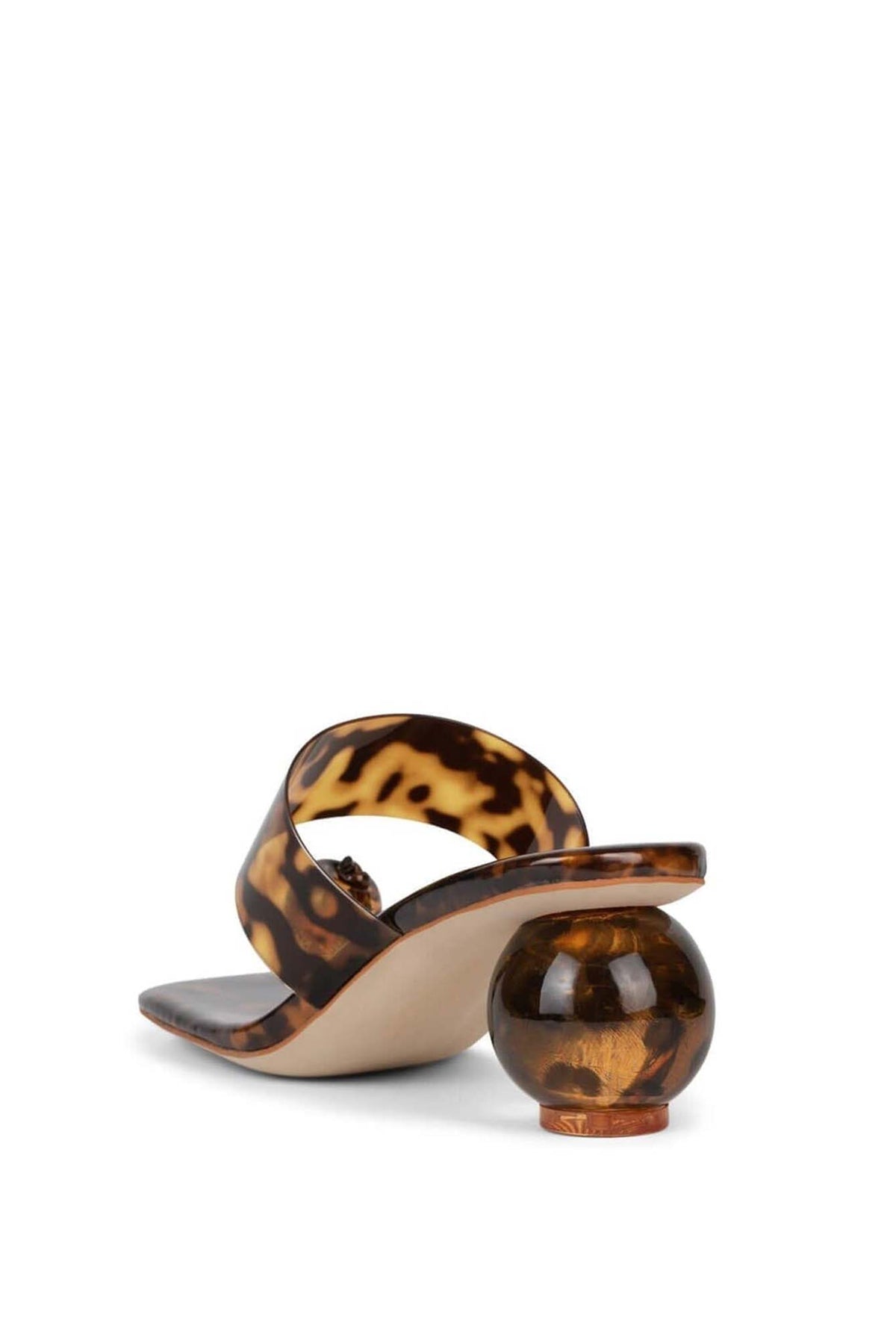 Latus รองเท้าแตะหัวเหลี่ยม ออกแบบโดย Jeffrey Campbell จำหน่ายโดย Villains SF โดดเด่นด้วยสายรัดด้านบนแบบเส้นเดียวที่กว้าง จุดเด่นคือส้นเท้าที่มีลักษณะเป็นทรงกลม