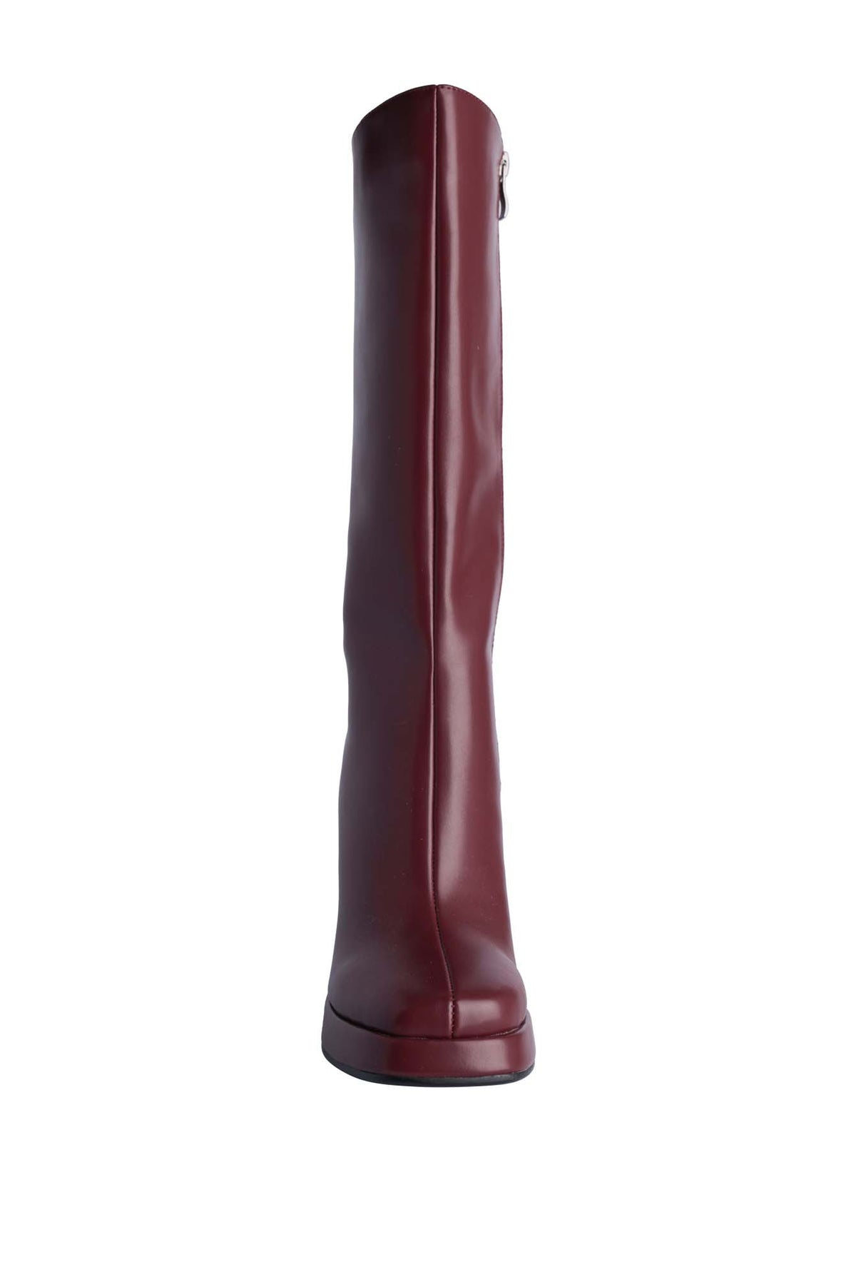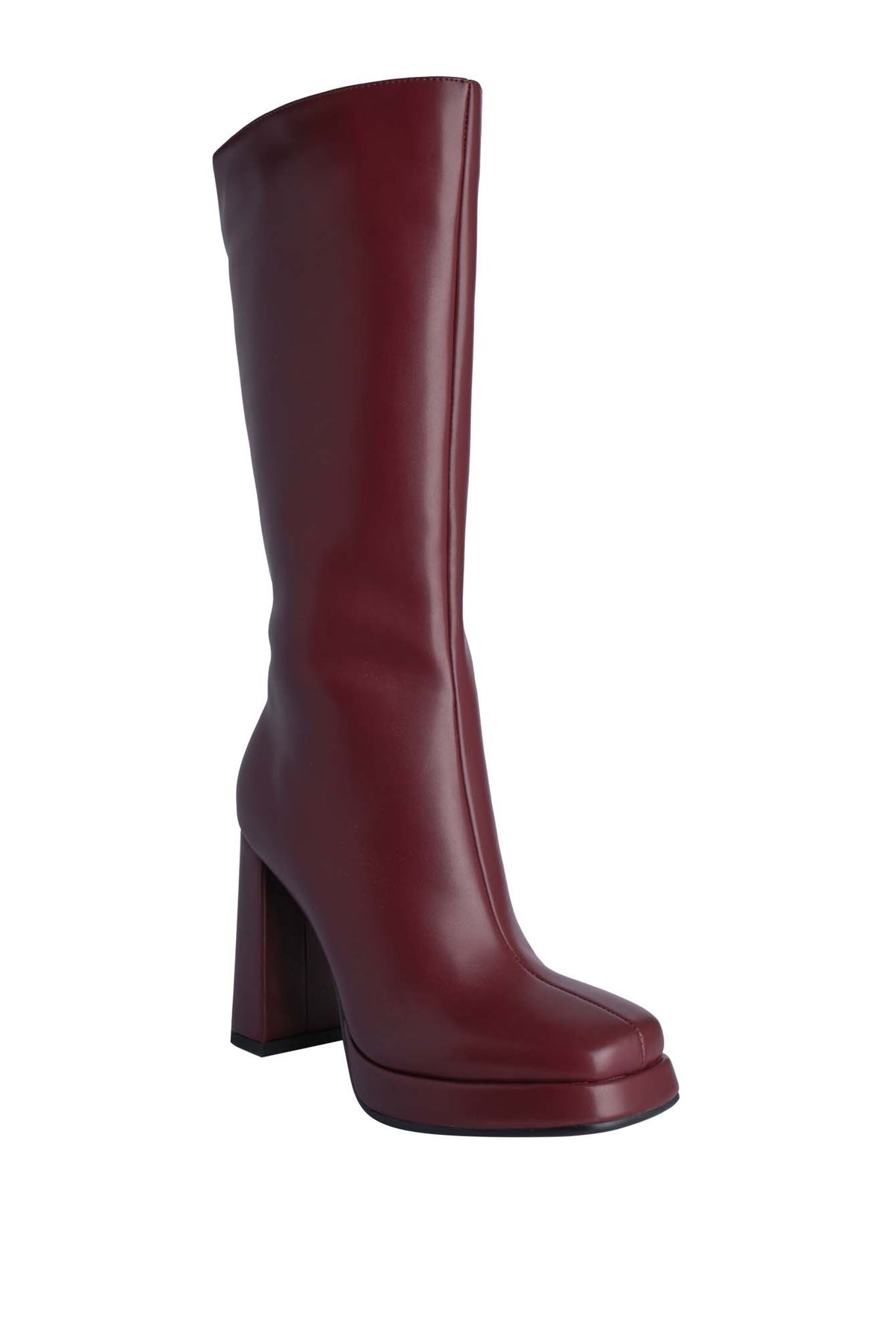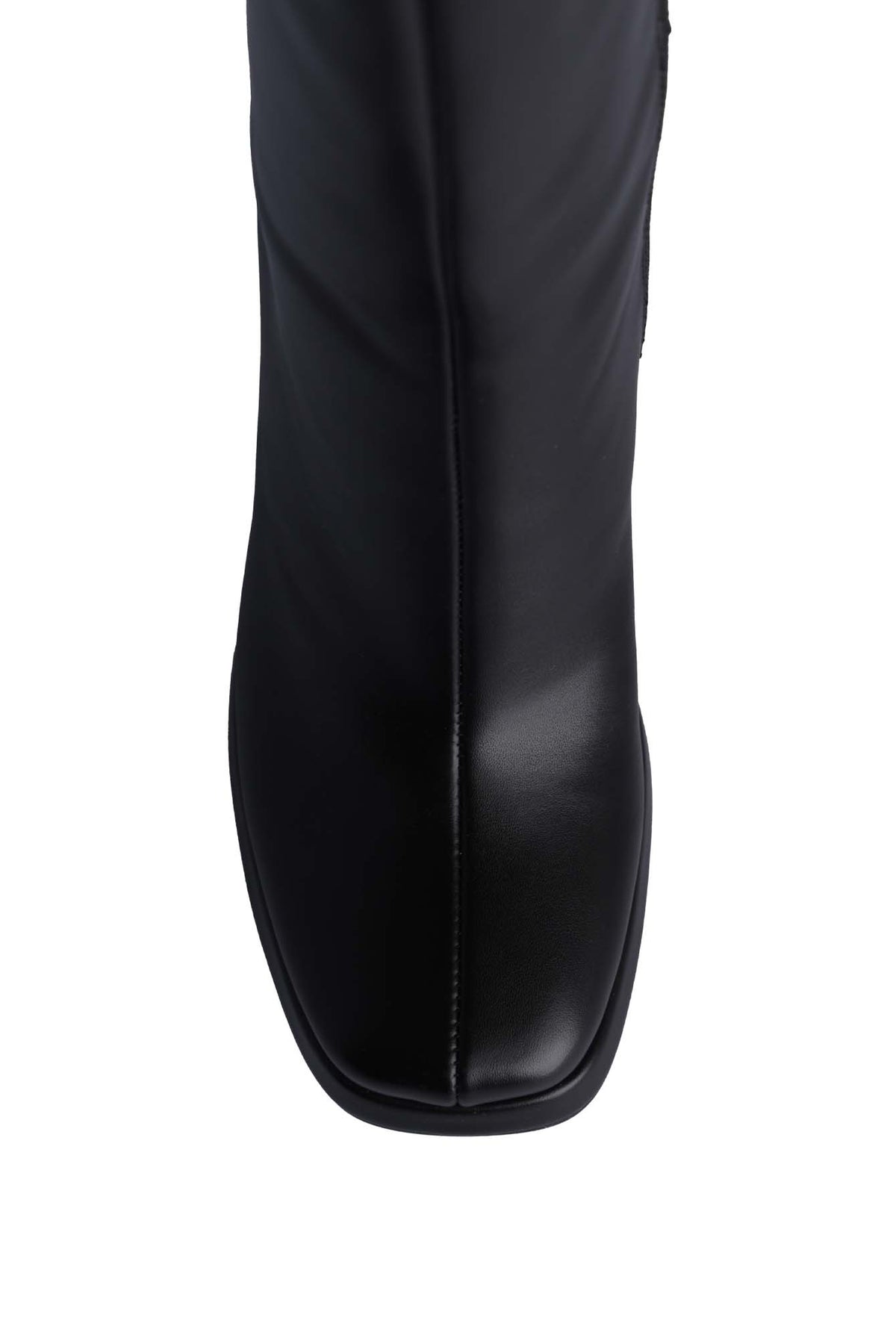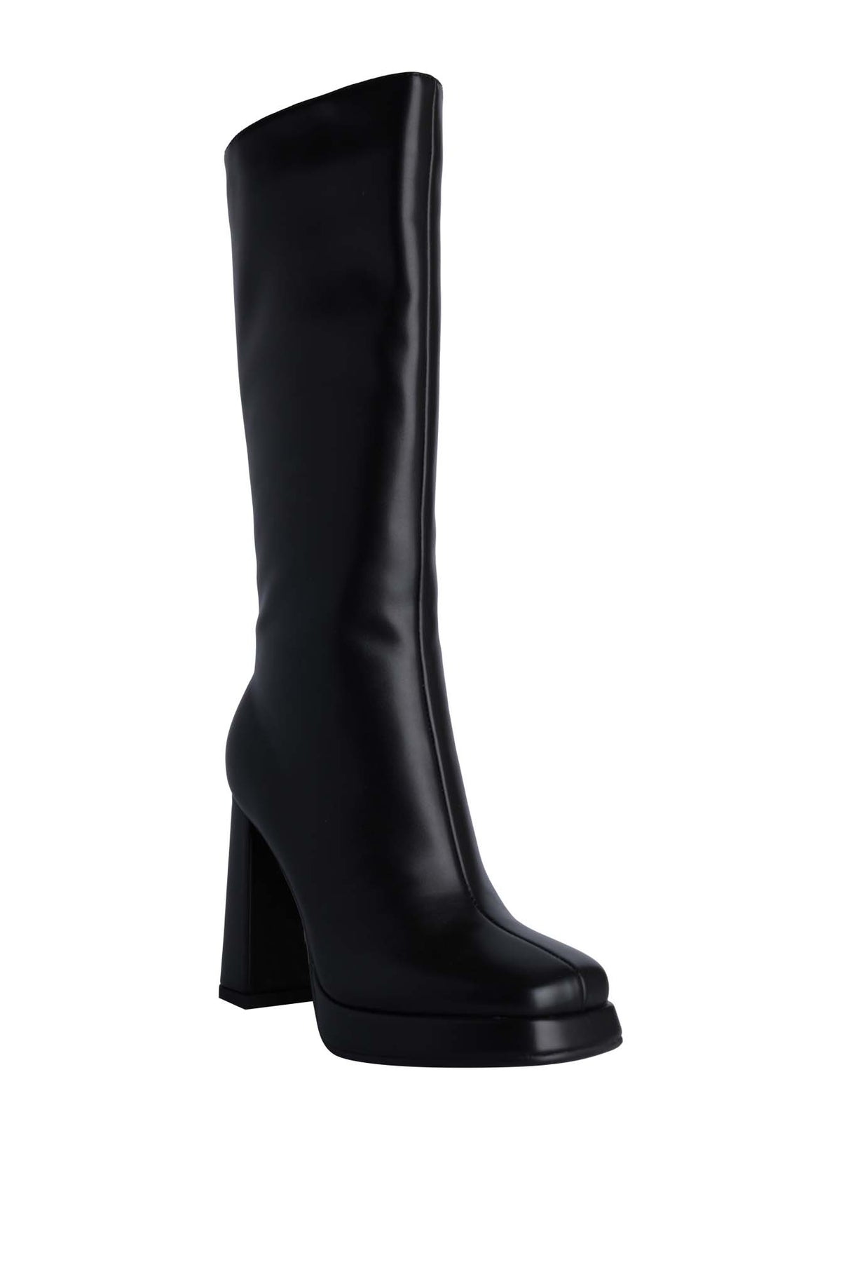 DARK BIND รองเท้าบู๊ทสูงถึงเข่า ส้นสูง ส้นบล็อก พื้นรองเท้าแบบแพลตฟอร์มที่ช่วยเพิ่มความสูง ดีไซน์หัวมน เรียบง่ายแต่ดูสะอาดตา ไร้องค์ประกอบตกแต่งที่มองเห็นได้ ด้านในมีซิป (สวมใส่ง่าย) รองเท้าบู๊ทมีความทันสมัย รองเท้าบู๊ทสไตล์นี้มักถูกเรียกว่า "รองเท้าบู๊ทแบบแพลตฟอร์ม" หรือ "รองเท้าบู๊ทส้นหนา" และเป็นที่นิยมสำหรับทั้งโอกาสลำลองและงานทางการ
