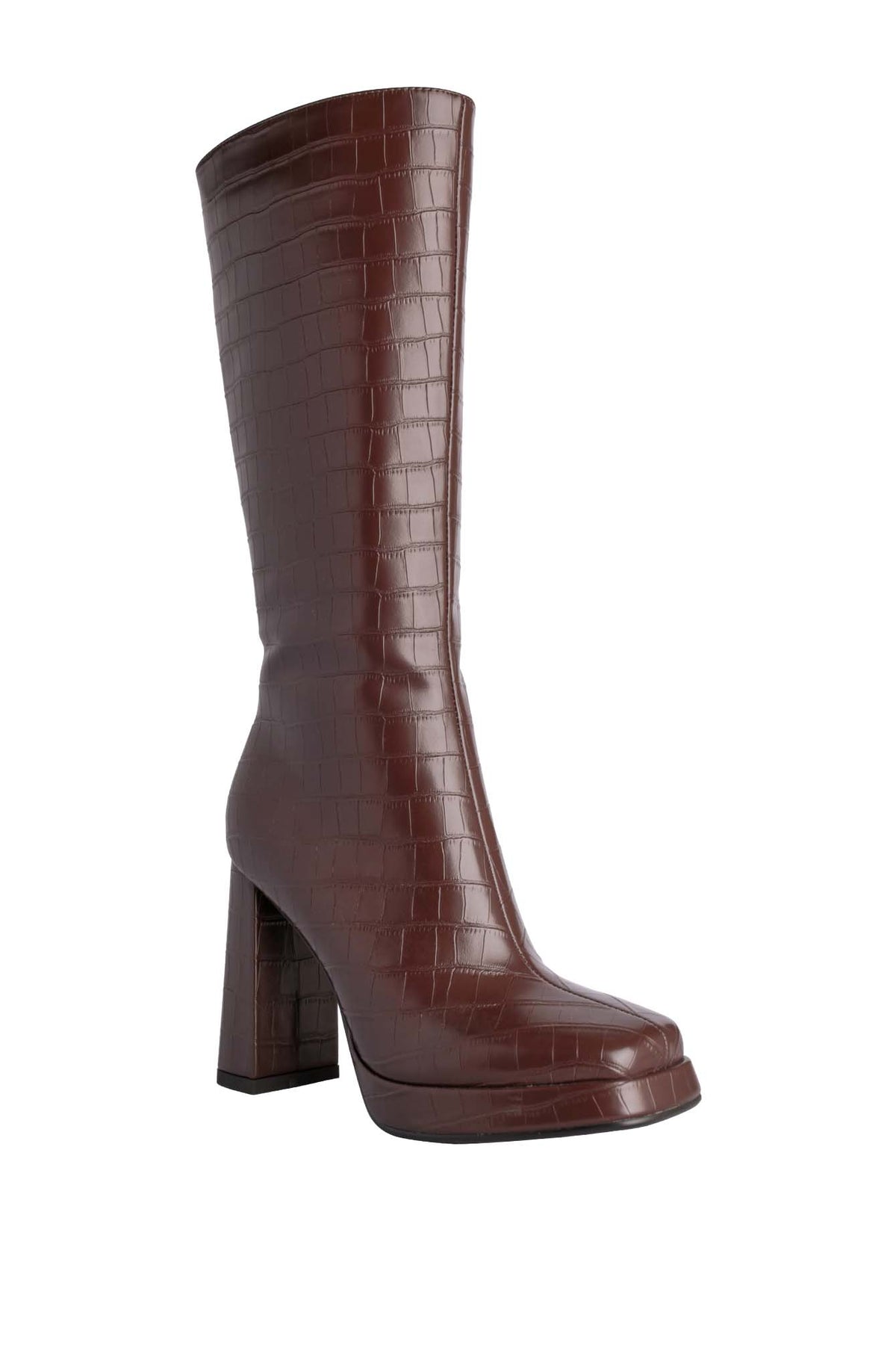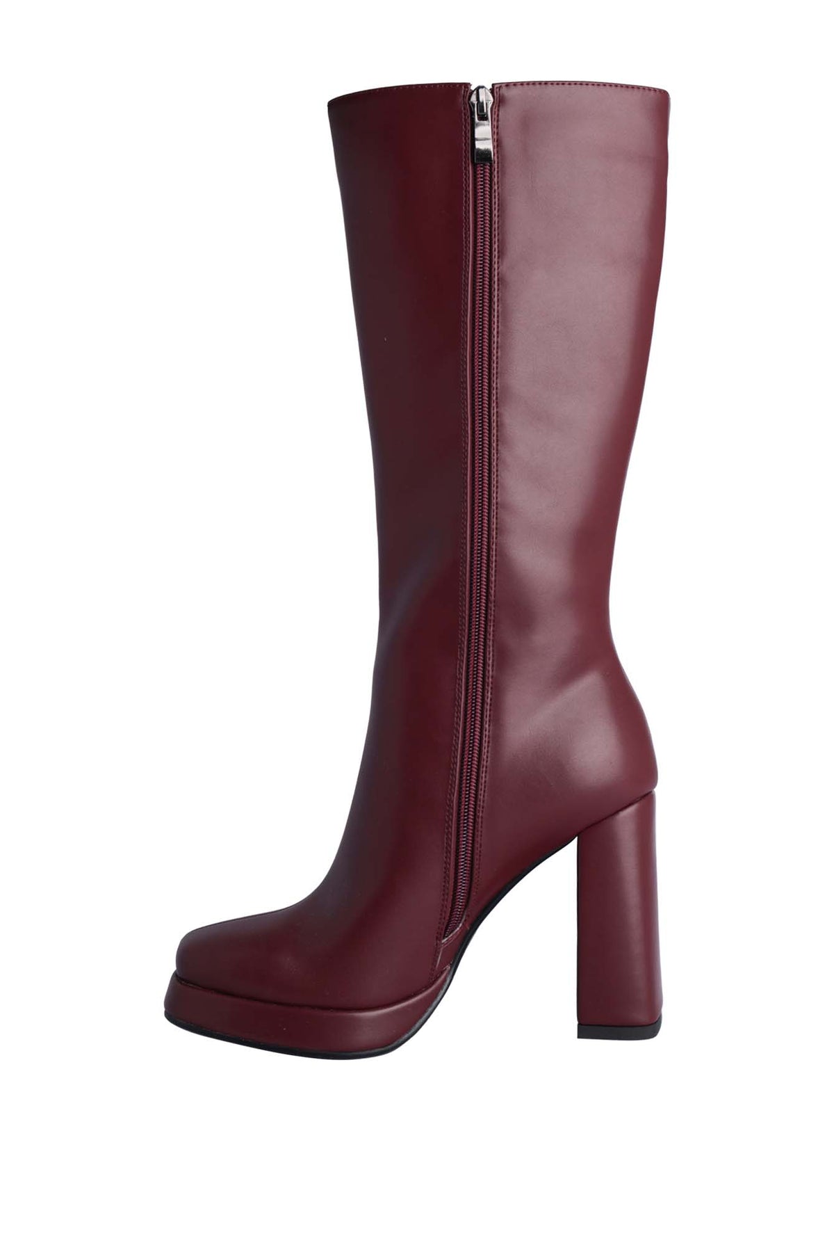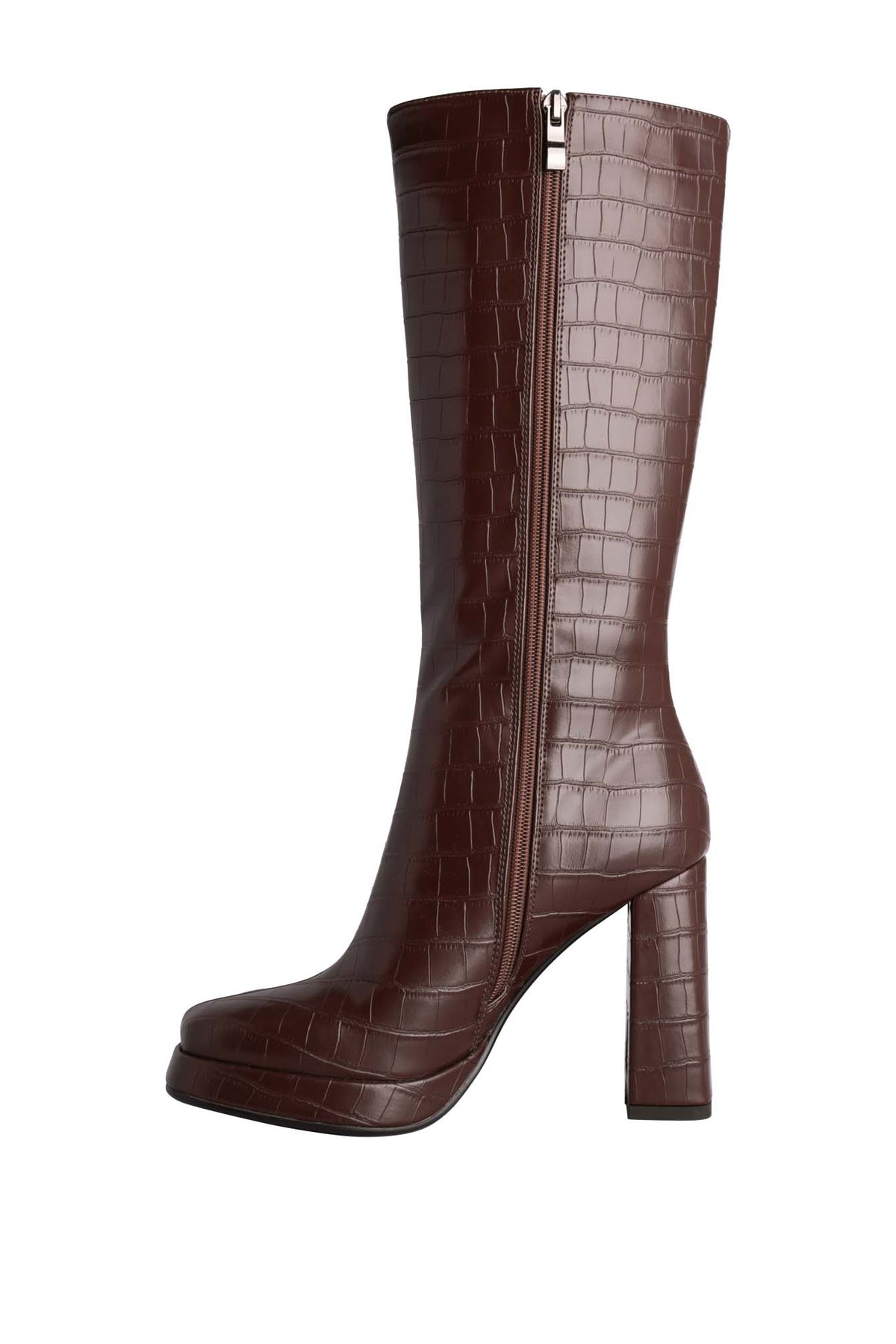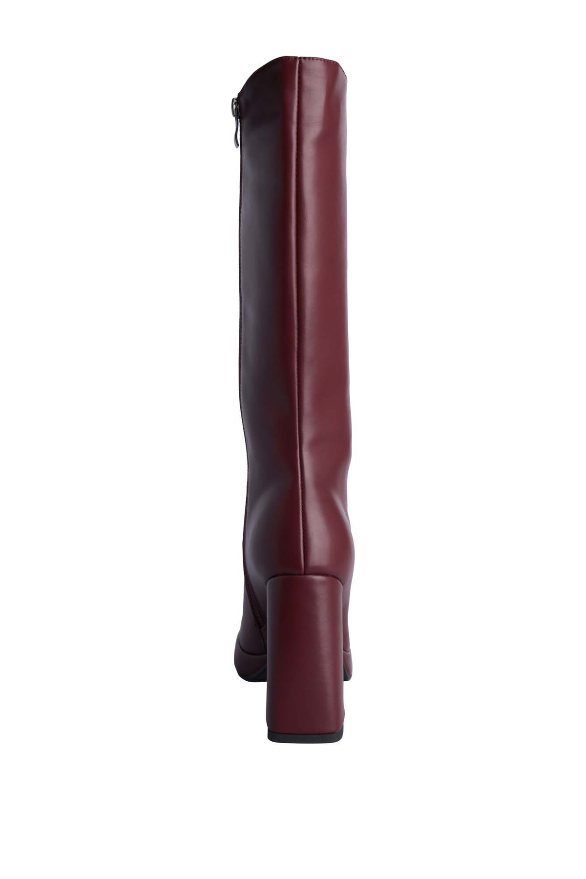 DARK BIND รองเท้าบู๊ทสูงถึงเข่า ส้นสูง ส้นบล็อก พื้นรองเท้าแบบแพลตฟอร์มที่ช่วยเพิ่มความสูง ดีไซน์หัวมน เรียบง่ายแต่ดูสะอาดตา ไร้องค์ประกอบตกแต่งที่มองเห็นได้ ด้านในมีซิป (สวมใส่ง่าย) รองเท้าบู๊ทมีความทันสมัย รองเท้าบู๊ทสไตล์นี้มักถูกเรียกว่า "รองเท้าบู๊ทแบบแพลตฟอร์ม" หรือ "รองเท้าบู๊ทส้นหนา" และเป็นที่นิยมสำหรับทั้งโอกาสลำลองและงานทางการ