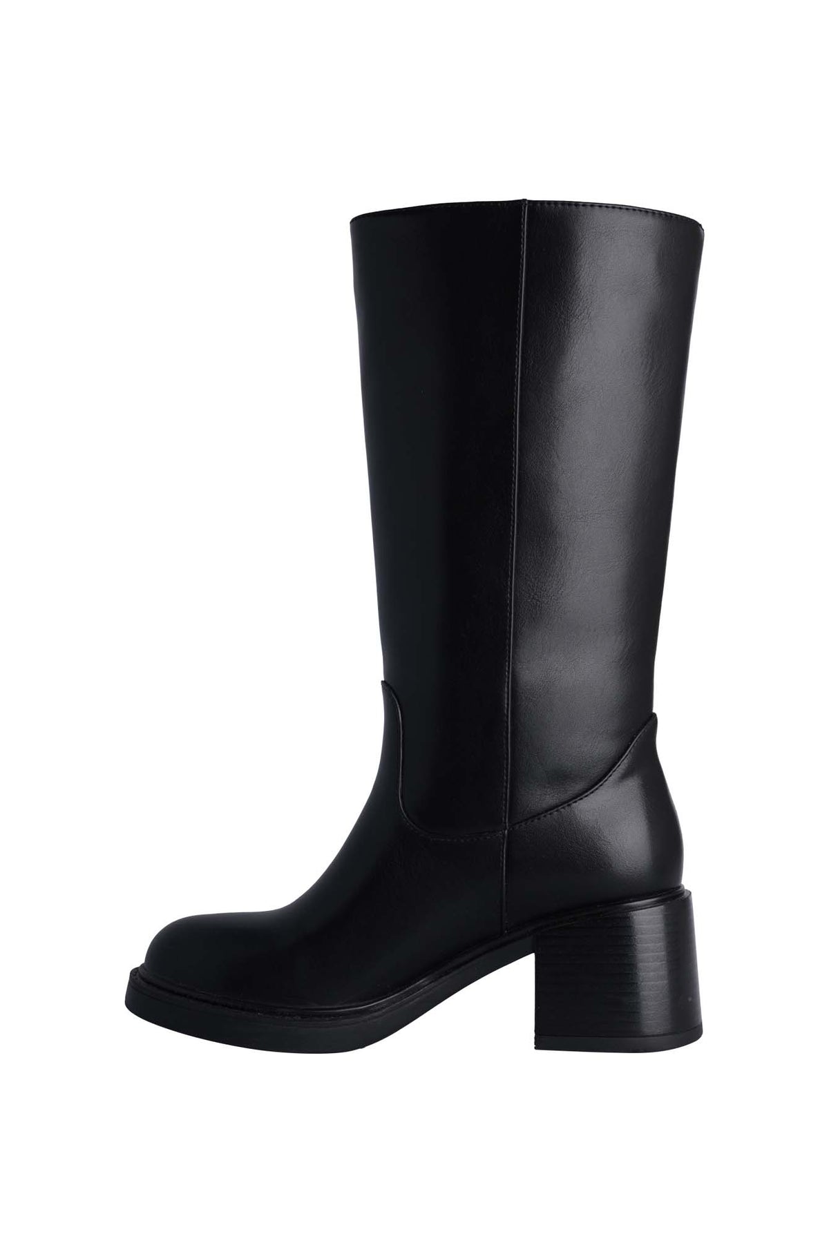 V-CLASS รองเท้าบูทสูงถึงเข่า V-CLASS รองเท้าบูททรงหัวมน ส้นเตี้ยแบบหนาสีดำ พื้นรองเท้าก็เป็นสีดำเช่นกัน หนาเล็กน้อย ให้ความรู้สึกมั่นคง ดีไซน์เรียบง่ายและสะอาดตา เป็นสไตล์คลาสสิกที่ผสมผสานความทันสมัย
